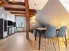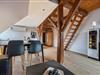 På 1. etage: (åbent køkken(kogeplade(Komfur med to kogeplader, glaskeramisk), elkedel, brødrister, kaffemaskine, mikrobølgeovn, køle-fryseskab), stue / spisestue(dobbeltsovesofa, Fjernsyn, spisebord), badeværelse(bruser, håndvask, toilet)) Loft: (svalegang soveværelse(via forholdsvis stejle trapper)(dobbeltseng(180 x 200 cm))) varme(gas), have(deles med andre gæster), parkering, Håndklæder/sengelinned (ekstra gebyr)