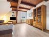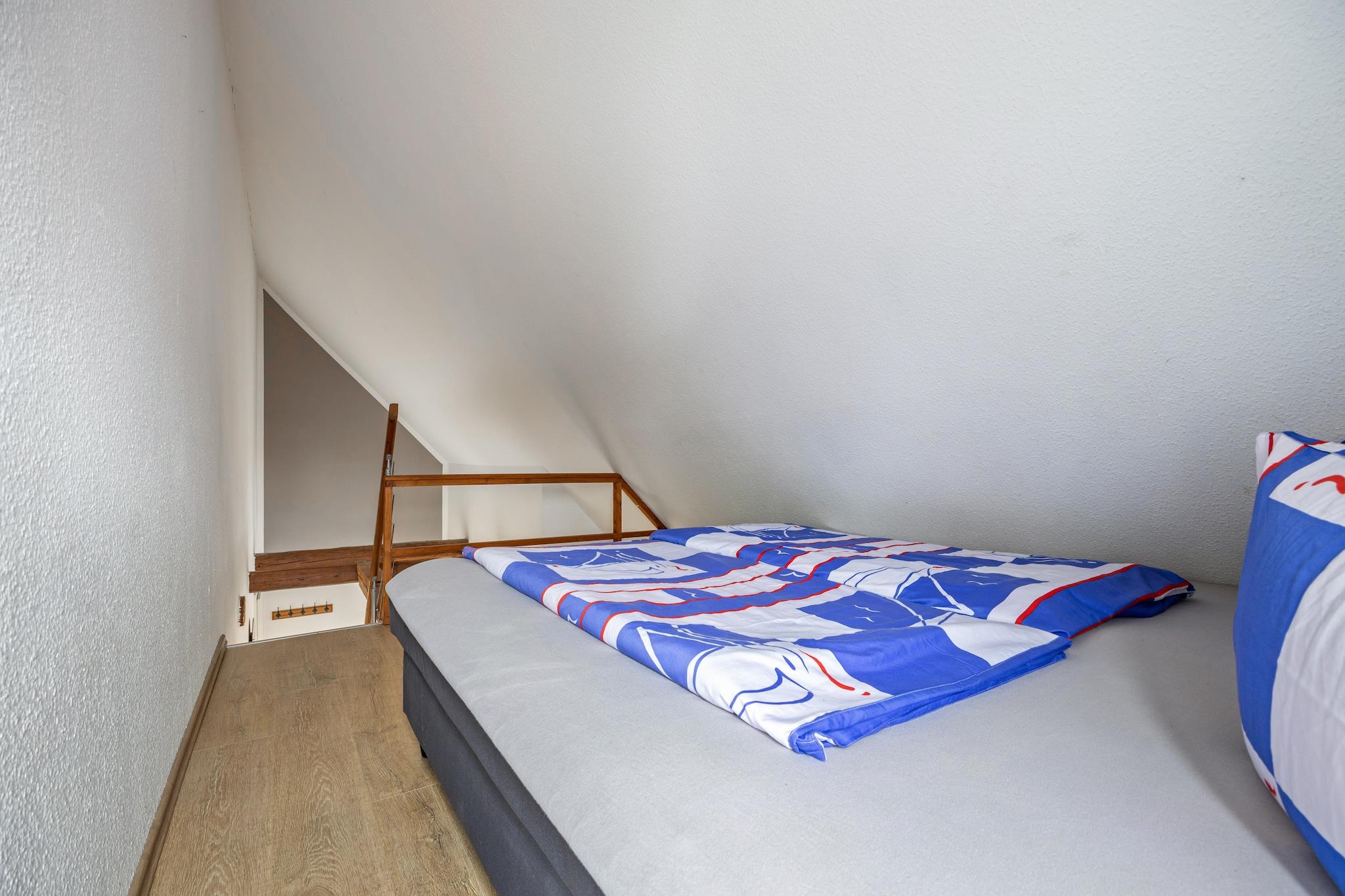 På 1. etage: (åbent køkken(kogeplade(Komfur med to kogeplader, glaskeramisk), elkedel, brødrister, kaffemaskine, mikrobølgeovn, køle-fryseskab), stue / spisestue(dobbeltsovesofa, Fjernsyn, spisebord), badeværelse(bruser, håndvask, toilet)) Loft: (svalegang soveværelse(via forholdsvis stejle trapper)(dobbeltseng(180 x 200 cm))) varme(gas), have(deles med andre gæster), parkering, Håndklæder/sengelinned (ekstra gebyr)
