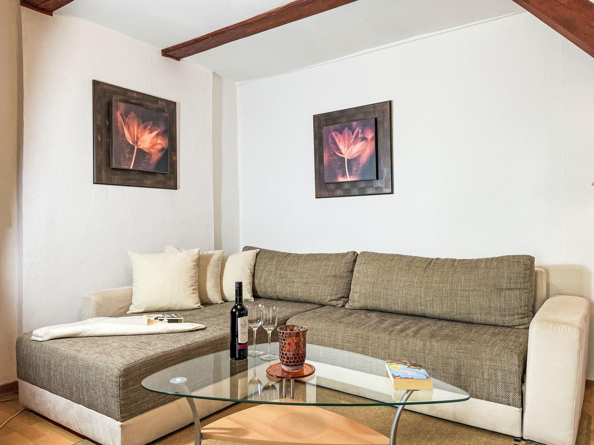 2-room house 40 m2, on the ground floor. Cosy furnishings: living/sleeping room with 1 double sofabed, dining table, satellite TV and radio. 1 room with 2 beds. Kitchenette (2 hot plates, toaster, kettle, microwave). Exit to the terrace. Shower/WC. Oil heating. Terrace. Terrace furniture, barbecue (portable). Facilities: children's high chair, baby cot. Internet (WiFi, free). Parking (1 car) at the house. Please note: non-smoking house. Smoke alarm.