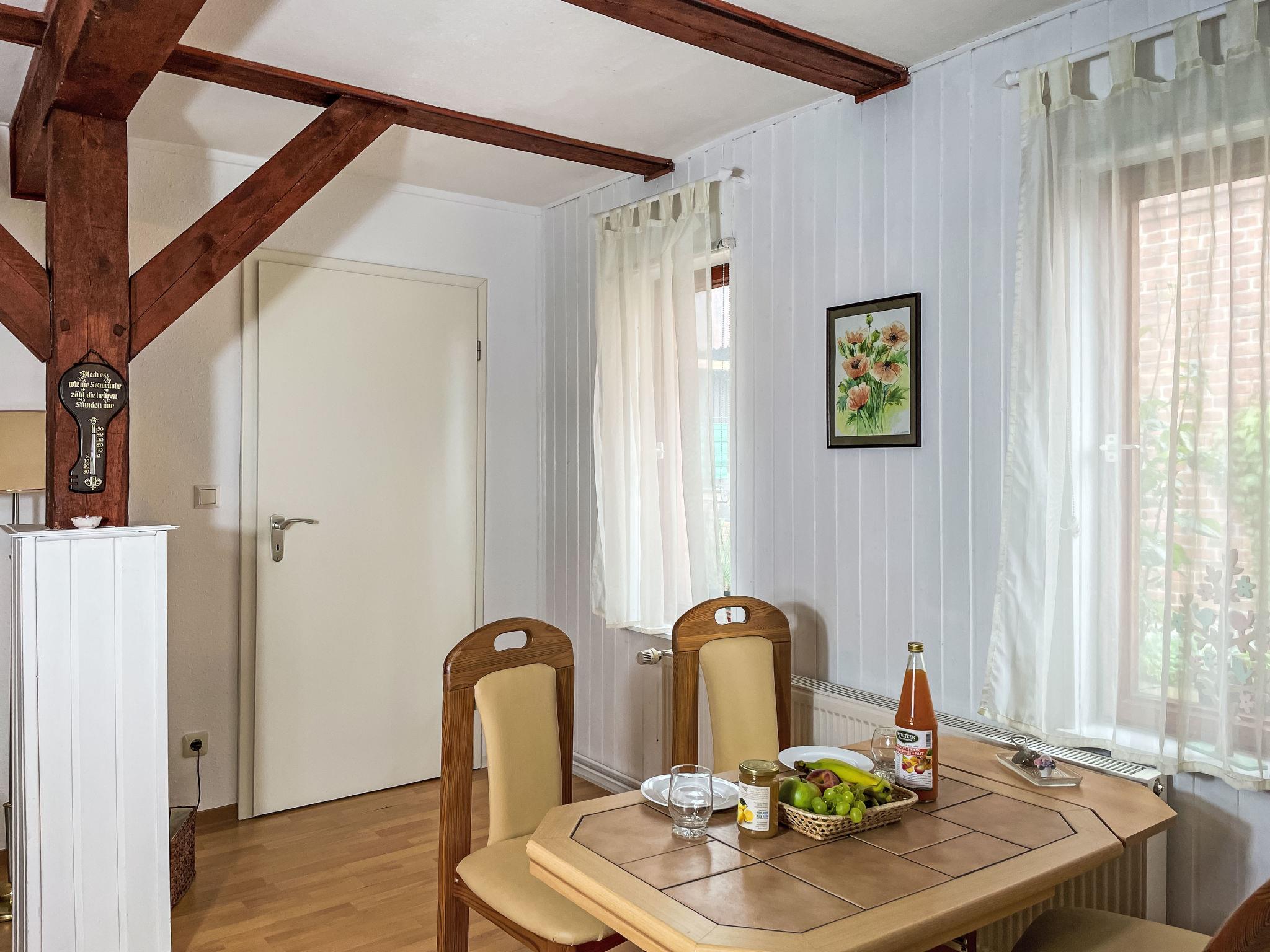 House "Jana". 200 m from the centre of Buchholz, on the outskirts, 13 km from the centre of Röbel, 22 km from the centre of Wittstock, 800 m from the lake. Stepped path (2 steps) to the house. Parking on the premises. Supermarket 13 km, bus stop "Buchholz" 450 m, grass beach 800 m, indoor swimming pool 13 km, lake Müritzsee 800 m. Please note: 1st floor is closed and not occupied. The owner lives on the same property. Storage for bicycles on the terrace.