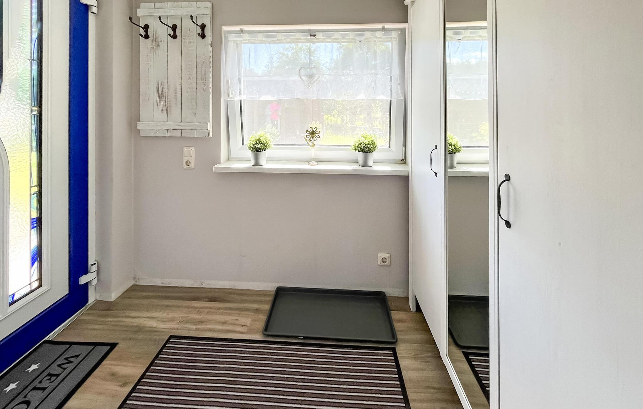 Det ikke-ryger feriehus i to etager er fritliggende på ejerens 1.400 kvm store boligejendom i en rolig beliggenhed i udkanten af by og skov. Efter at det tidligere udhus i 2016 blev ombygget til sommerhus, er den udvendige facade endnu ikke helt færdig, men indretningen og indretningen er meget tiltalende.Der er stue/alrum i stueetagen med åbent tekøkken ( polstret bænk, spisebord, fladskærms-tv, el-komfur med ovn, køleskab med fryser, mikroovn, diverse køkkenmaskiner), badeværelse med bruseniche, toilet og hårtørrer samt opbevaringsrum. På loftet (adgang via en pladsbesparende trappe) er der soveværelse med dobbeltseng og fladskærms-tv og endnu et soveværelse med enkeltseng. Til kølige dage er den eneste opvarmningsmulighed i stueetagen en kakkelovn (brænde er gratis for første gang, derefter 5 EUR pr. kasse). På udearealet er der møbleret udendørs siddeplads, endnu en lille og overdækket siddeplads foran indgangspartiet, grill, sikker opbevaring/læ for medbragte cykler og parkeringsplads. Slutrengøring, sengelinned, håndklæder samt vand- og elforbrug er allerede inkluderet i den samlede pris. Mobiltelefonmodtagelsen i byen er dårlig, men boligen har begrænset Wi-Fi-modtagelse fra værtens nabohus. Små hunde op til en maksimal skulderhøjde på 40 cm er tilladt i denne ejendom. Buddenhagen er en smuk landsby og også en forstad til Wolgast (ca. 11 km), porten til øen Usedom. Stedet ligger i et omfattende skovområde, som er ideelt til vandreture og svampeplukning. I Sansernes Skov er der flere naturoplevelser og læringsstier for store og små om emnet skove og deres beboere. De bedste betingelser for naturferier på udkig efter fred og ro. Østersøen (badebyen Trassenheide) ligger cirka 20 km væk Takket være den nærliggende togstation Usedomer Bäderbahn (ca. 700 m) kan du komme til øen og dermed alle Usedoms Østersø-resorts på en afslappet måde og uafhængigt af ferie. Trafik.