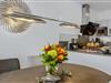Hele lejligheden har ægte parketgulve og gulvvarme. Den lyse og rummelige opholds- og spisestue med pejs udstråler elegance og varme. Delikate farver og lækre kvalitetsmøbler som en manuelt justerbar dobbeltsofa eller en elektrisk justerbar afslapningsstol fuldender udstyret.