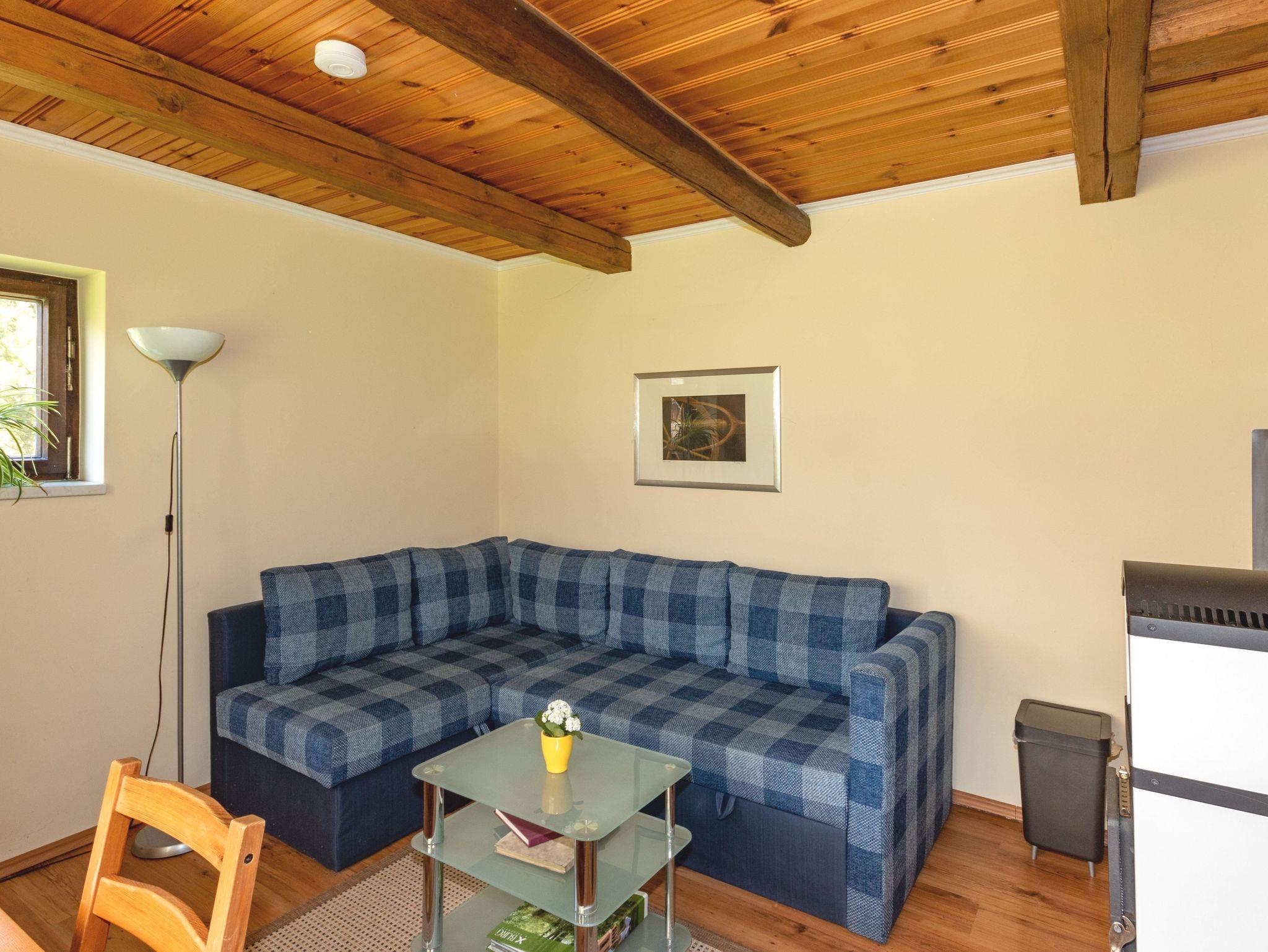 Die Ferienanlage Froschkönig liegt auf einem großen gepflegten Grundstück. Im Erdgegeschoss des kleinen gemütlichen Ferienhauses befindet sich der Wohnraum mit Sitzecke, Kamin und Pantryküche sowie das Bad mit DU/WC. Über eine ausziehbare Treppe gelangt man in das Dachgeschoss zum Schlafraum. Dort befinden sich zwei getrennt stehende extrabreite Betten (1,40 x 2,00m). Direkt vor dem Ferienhaus befindet sich eine Terrasse mit Gartenmöbeln und ein kleiner Badeteich.