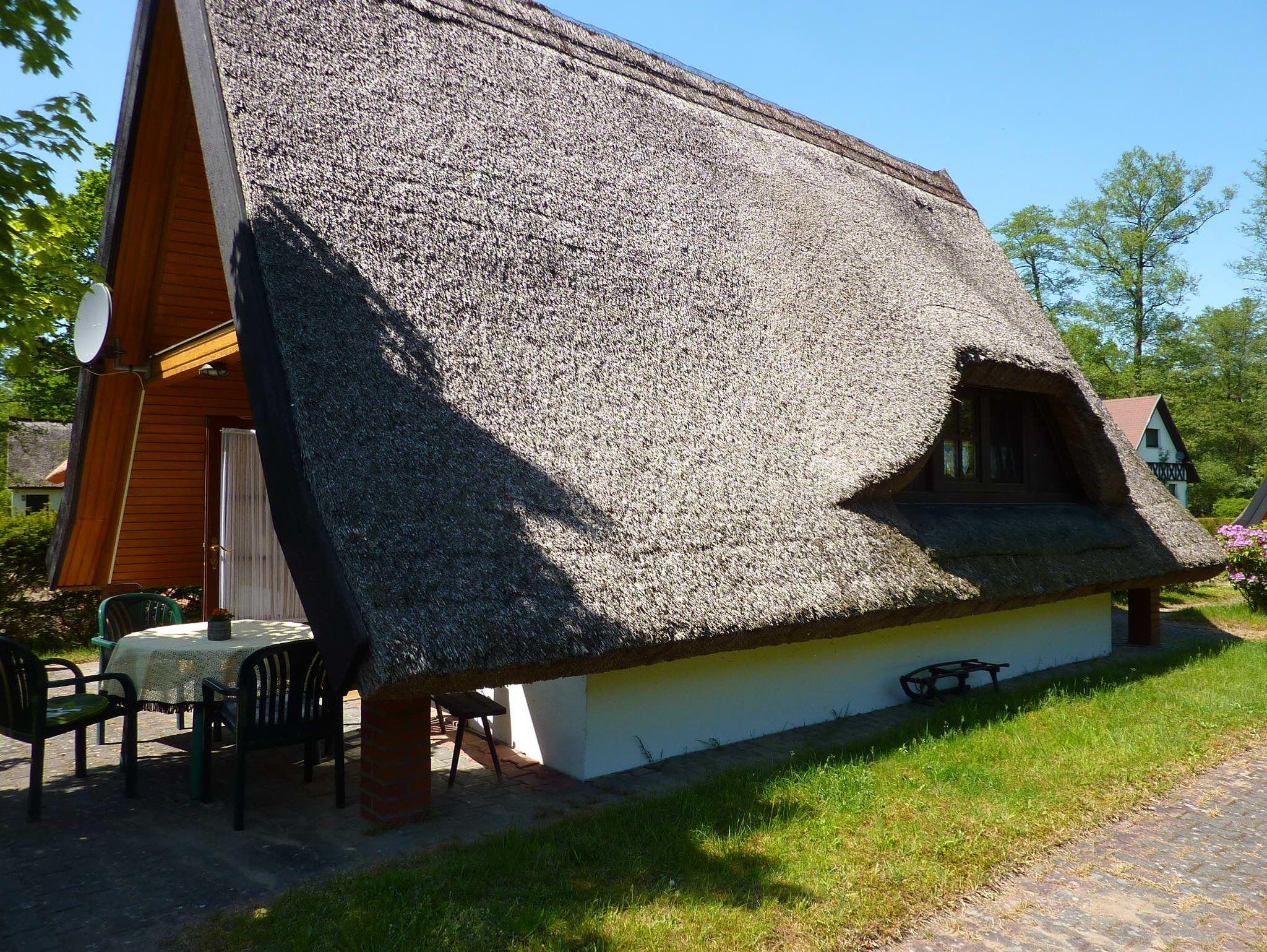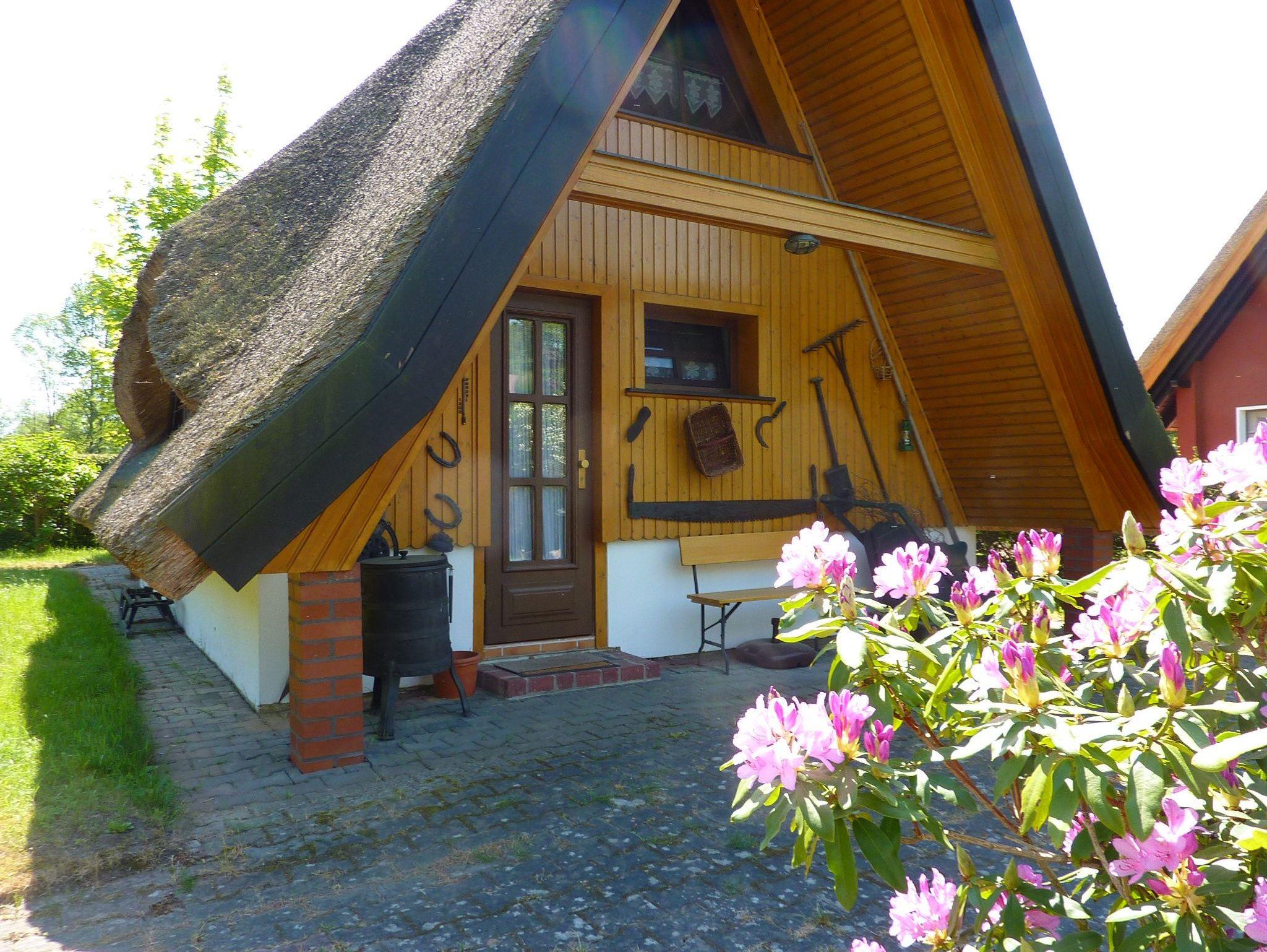 Kleines reetgedecktes Ferienhaus auf der Kauperinsel. Das Ferienhaus verfügt über eine Schlafgalerie mit zwei Einzelbetten, einen Wohnraum mit Sitzecke (Aufbettung möglich) und Essplatz, eine kleine Küche, ein Bad mit DU/WC und eine Terrasse.