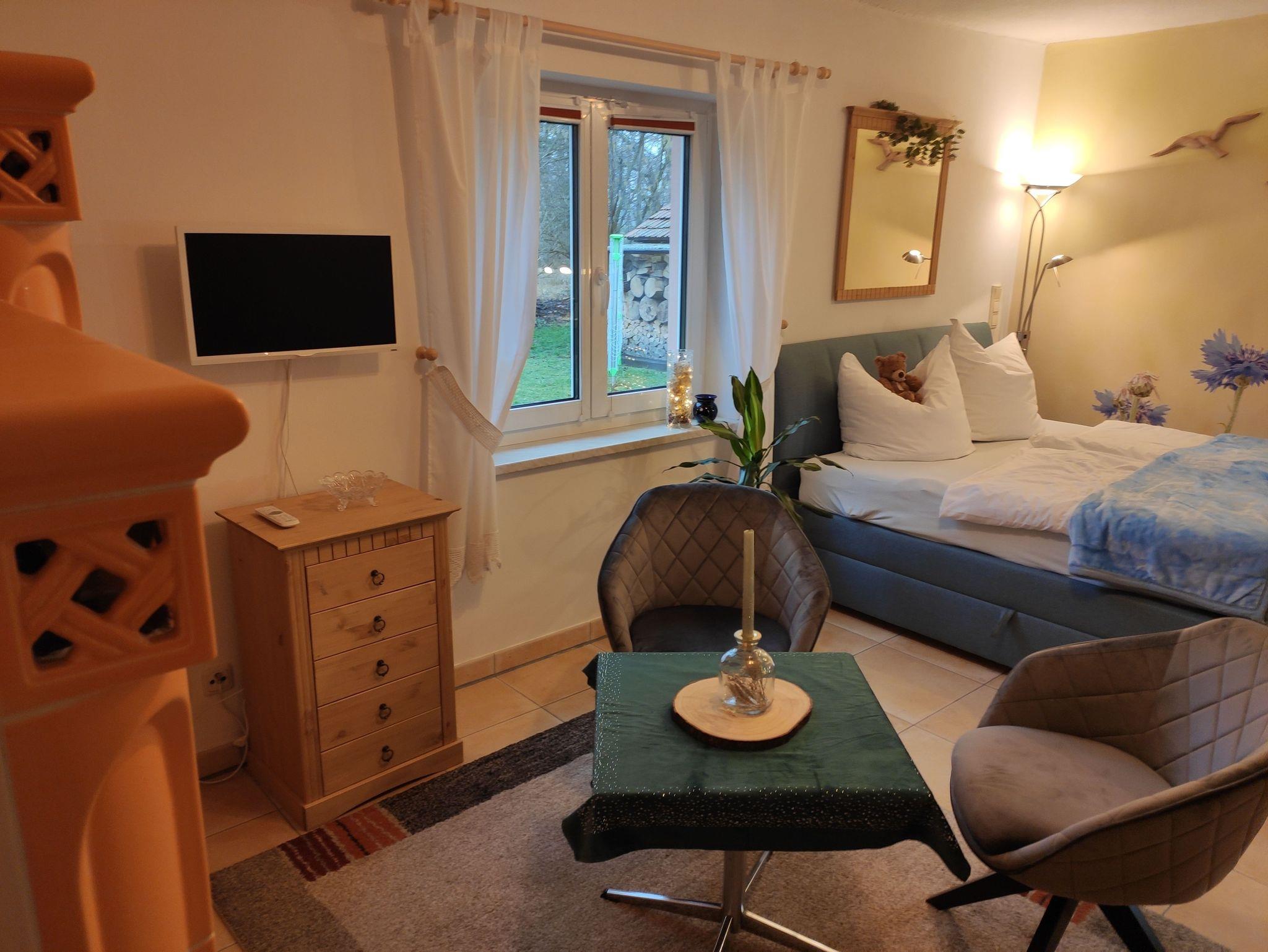 Mit einer Wohnfläche von 35 m2 ist das Ferienhäuschen ideal geeignet für 2 Personen. Es bietet Ihnen den Luxus einer perfekt ausgestatteten Küche, eines sehr gemütlichen Wohn- und Schlafraums und eines kleinen Bads mit Dusche und WC. Die Fußbodenheizung und ein mit Holz beheizbarer Ofen ermöglichen eine ganzjährige Vermietung. Bei Bedarf kann auch ein Gitterbettchen beigestellt werden. Im eigenen Gartenbereich können Sie die Sonnenliegen nutzen, grillen oder an den anliegenden Gewässern mit einem Angelschein angeln. Gesäumt vom Ufer des Holunderfließes, hohen Erlen und farbenprächtigen Rhododendron genießen Sie den Ausblick ins Grüne. Auch Ihr Pkw findet direkt Platz auf dem Gartengelände. Unterstellmöglichkeiten für Ihre Fahrräder sind ebenfalls vorhanden. Bitte beachten Sie, dass die Ferienwohnung eine Nichtraucherwohnung ist. Haustiere sind in der Wohnung nicht erwünscht. Ein gutmütiger Kater wohnt bereits auf dem Hof und freut sich auf extra Streicheleinheiten. Aktuell befindet sich das Wehr im Umbau und kann gelegentlich zu Einschränkungen führen.