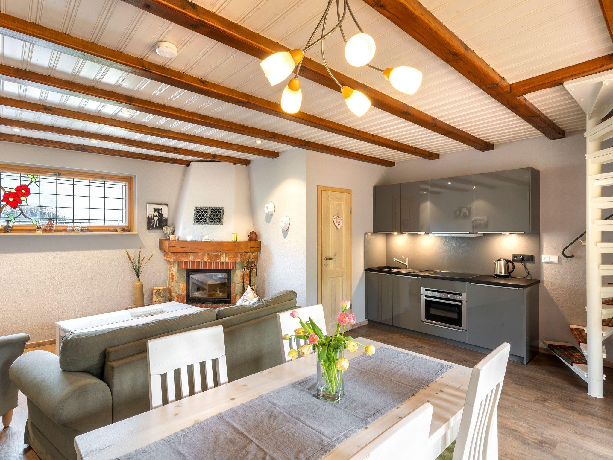 Das Ferienhaus bietet Platz für bis zu 4 Personen auf 60 m2 Wohnfläche, verfügt über zwei gemütliche Schlafräume, einen Wohnraum mit moderner Küchenzeile und ein Bad mit DU/WC. Eine eigene Bootsanlegestelle, ein Paddelboot für 2+1 Personen und zwei Tourenräder gehören zum Angebot. Der Parkplatz befindet sich am Haus.