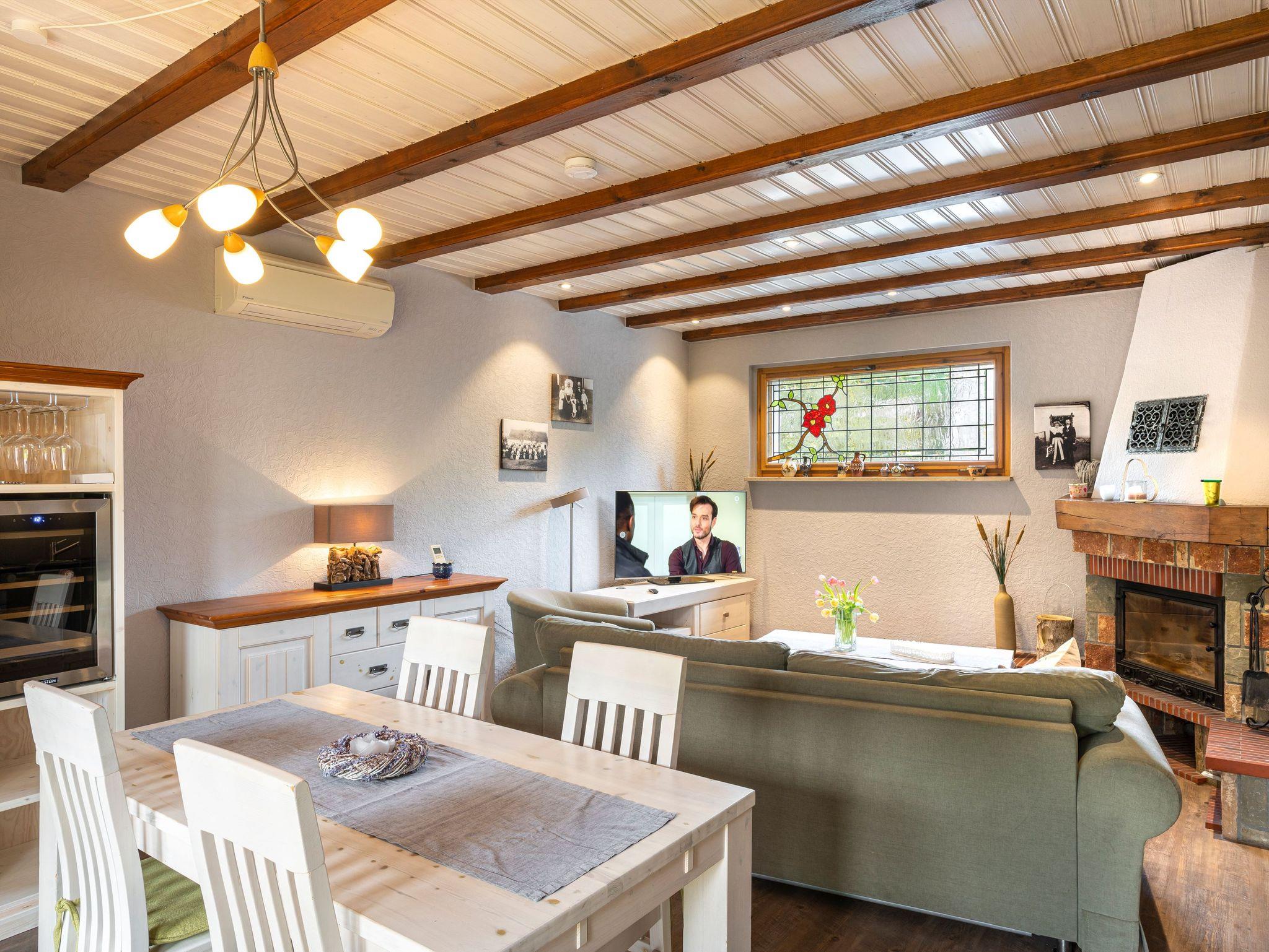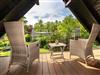 Das mit traditionellem Reet gedeckte Haus beherbergt bis zu 4 Personen. Im Inneren erwartet Sie ein großer offener Wohnraum mit gemütlicher Sofaecke, Kamin und LCD-TV, eine moderne Einbauküche mit Essbereich und Weinkühlschrank, sowie ein Bad mit Dusche. Im Obergeschoss befindet sich ein abgeschlossenes Schlafzimmer mit einem Doppel-Boxspringbett, Verdunklungsvorhängen und Insektenschutz. Um auch im Hochsommer angenehm schlafen zu können, nutzen sie die vorhandene Klimaanlage. Das zweite Schlafzimmer verfügt über zwei Einzel-Boxspringbetten in einer offenen Galerie mit Zugang zum großen möblierten Balkon.