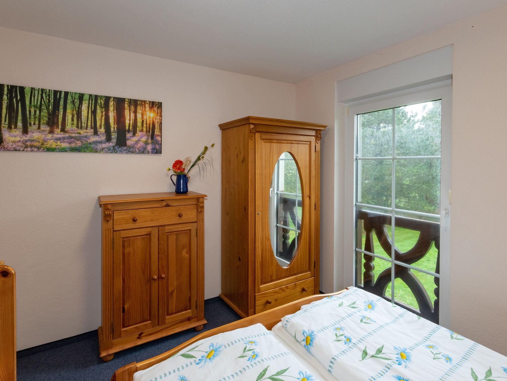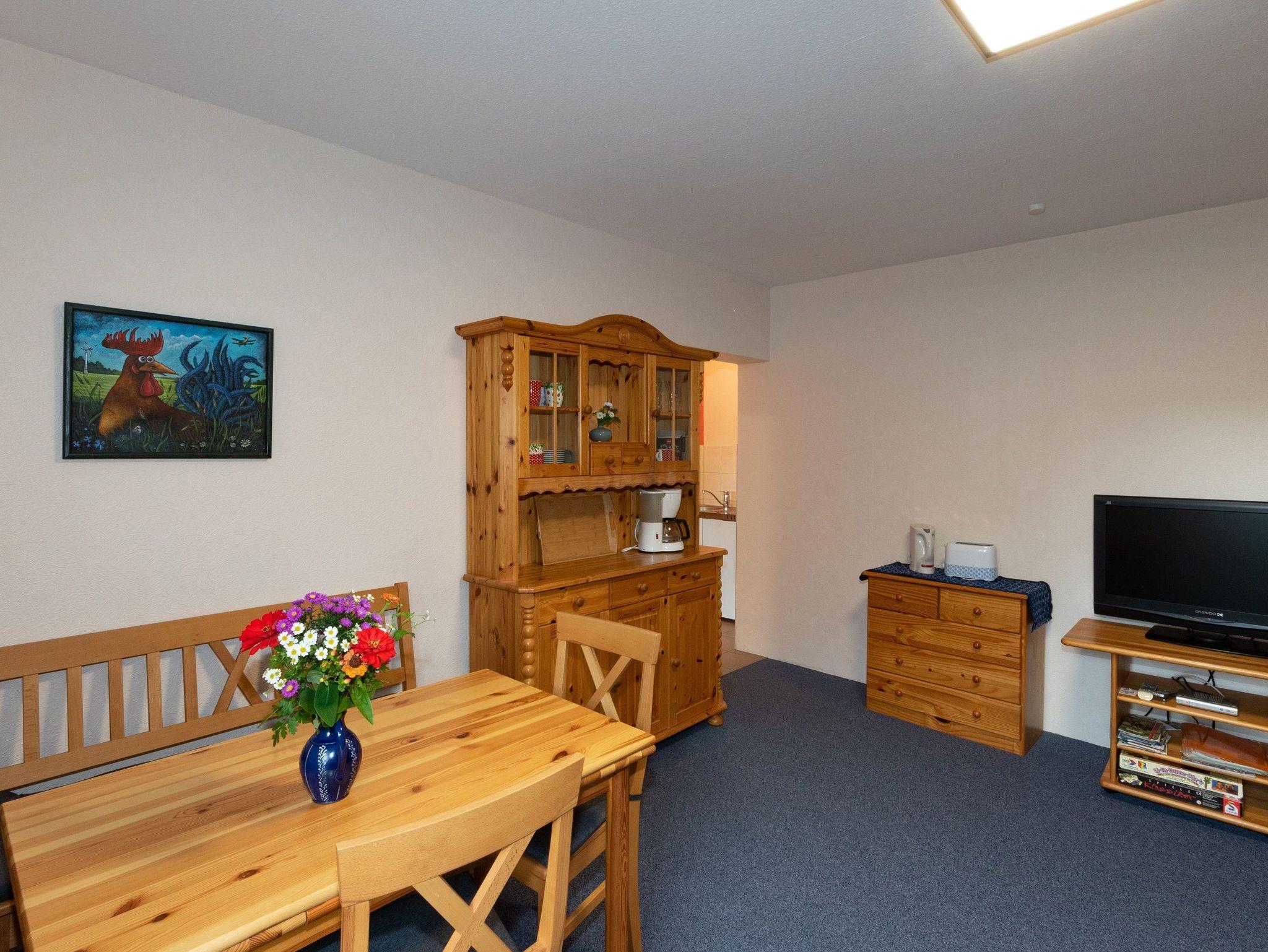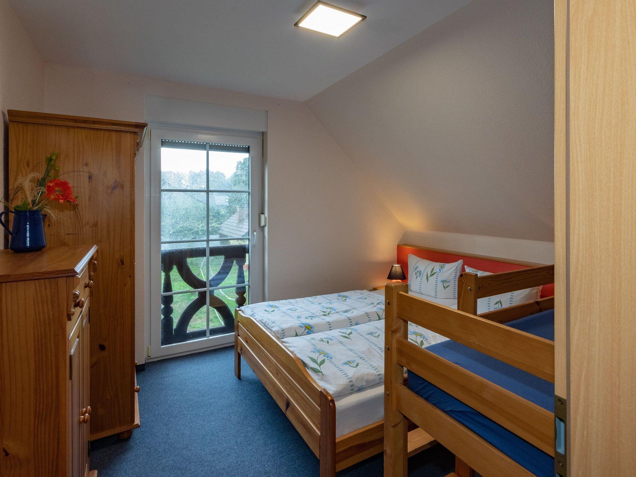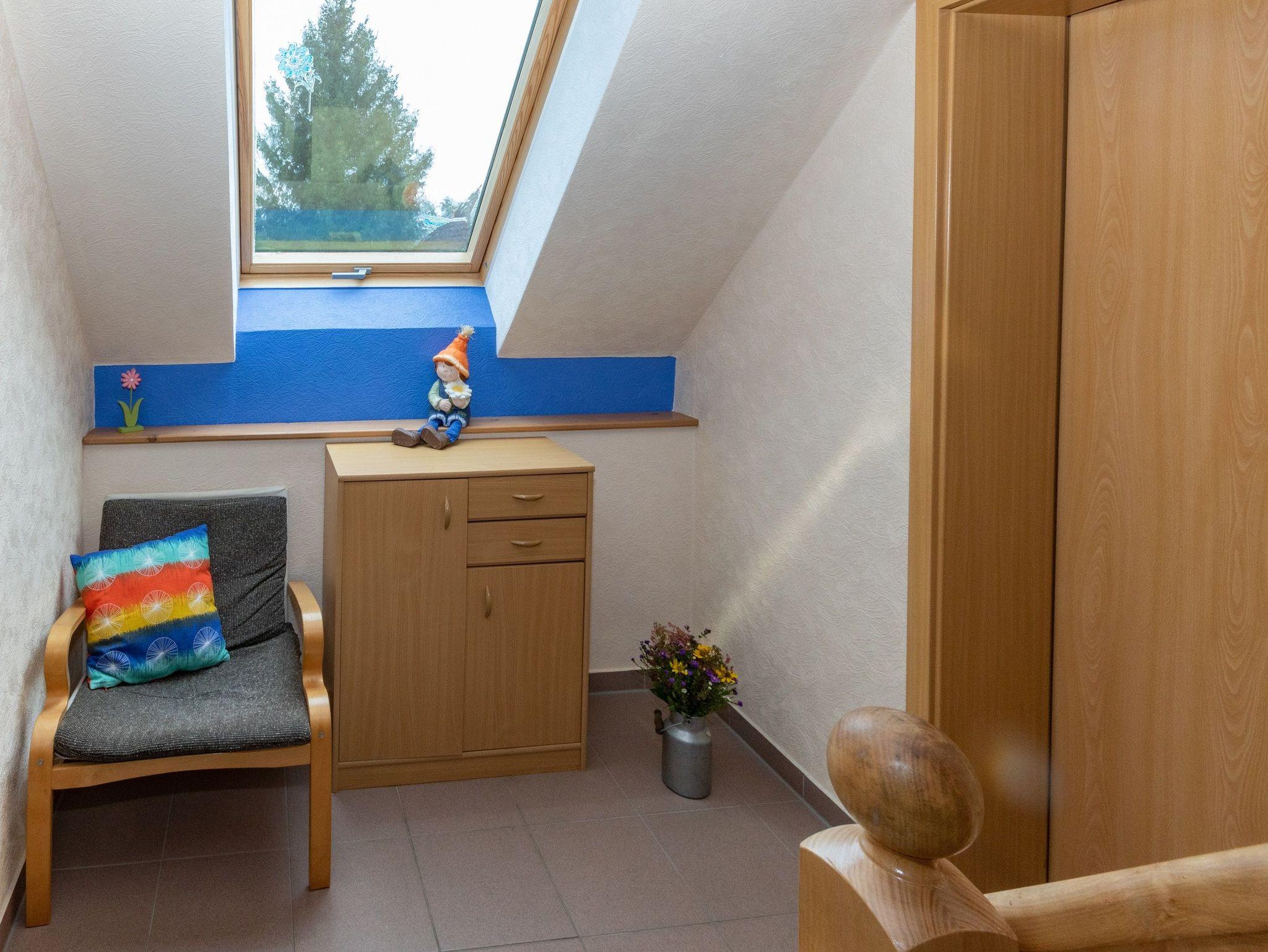 Die Ferienwohnung befindet sich im 1. OG und verfügt über einen Schlafraum, einen Wohnraum mit Küchenzeile und einem Bad mit DU/WC. Ab 3 Personen kann im Dachgeschoss ein zusätzlicher Schlafraum genutzt werden.
