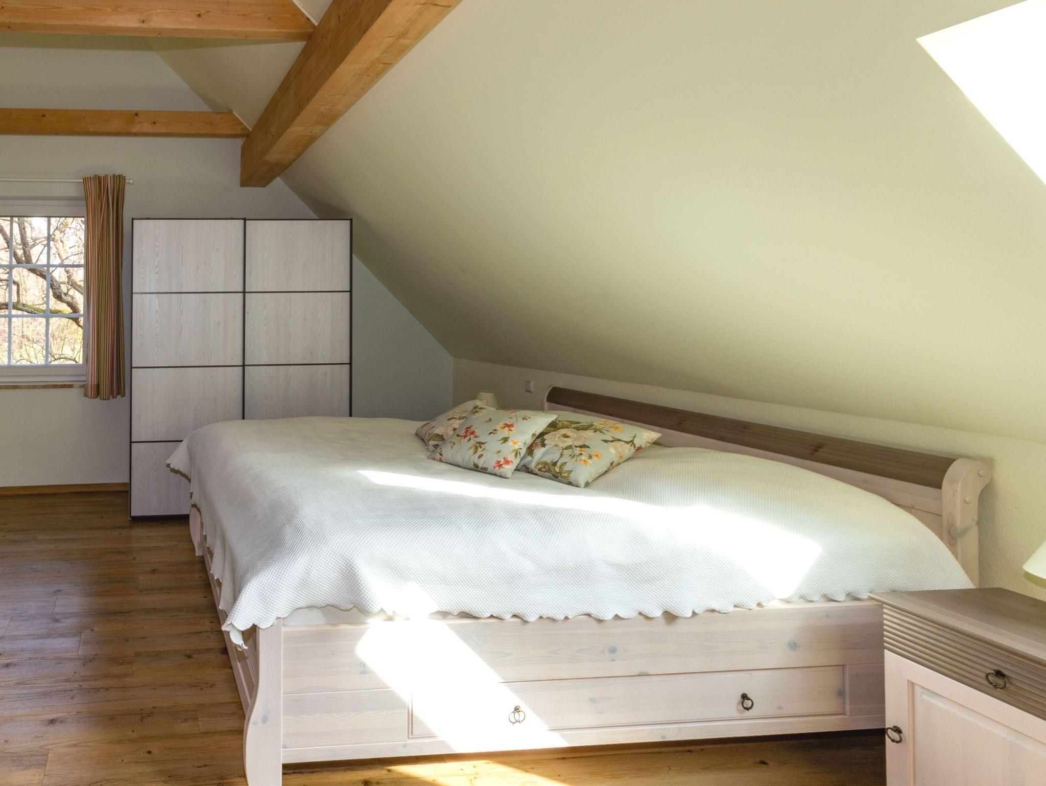 Der Froschkönig Ferienhaus und Ferienwohnungen liegt auf einem gepflegten Grundstück mit großem Garten und ist für Gäste ab 12 Jahren buchbar. Zur Anlage gehören ein kleines Ferienhaus und ein Appartementhaus mit vier Ferienwohnungen. Im Ferienhaus befinden sich im EG ein Wohnraum mit Pantryküche und DU/WC. Über eine ausziehbare Treppe gelangt man in das Dachgeschoss zum Schlafraum mit zwei getrennt stehenden Betten. Das Appartementhaus mit vier Ferienwohnungen ist hochwertig eingerichtet. Im EG der Ferienwohnungen befinden sich je der Wohn- und Küchenbereich sowie das Bad mit DU/WC. In den Ferienwohnungen 1-3 ist der Schlafbereich auf der Galerie untergebracht. In der Ferienwohnung 4 liegt der separate Schlafraum im OG und dort befindet sich auch ein zusätzliches Bad. Die Ferienwohnung 1 ist im EG barrierefrei. Eine Grillmöglichkeit steht den Gästen auf Anfrage zur Verfügung. Bitte um vorherige Absprache mit dem Gastgeber.