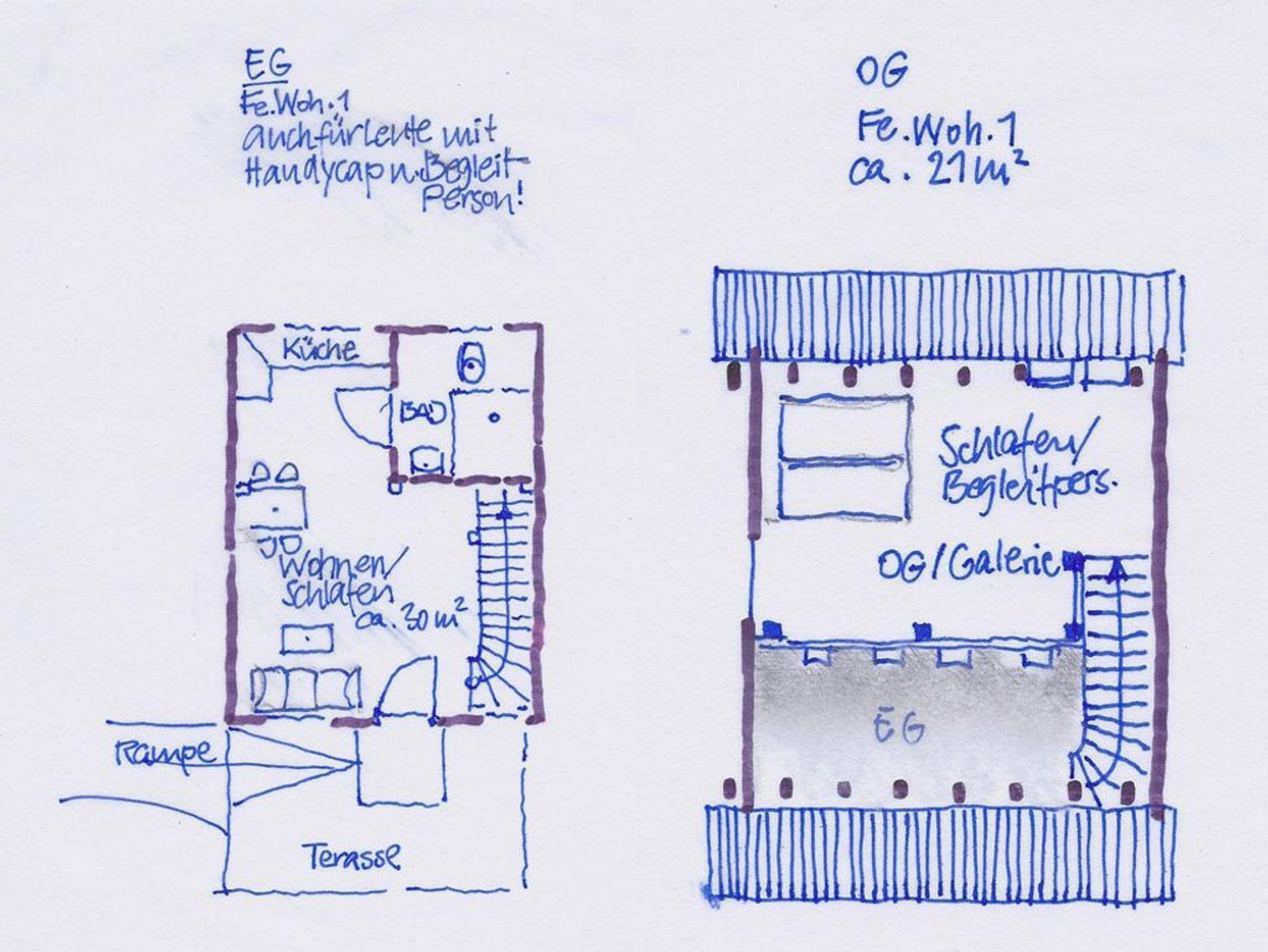 Froschkönig Ferienhaus und Ferienwohnungen (ab 12 J.), FeWo 1, Schlafgalerie, WZ/Küchenz., DU/WC (ab 12 J.)