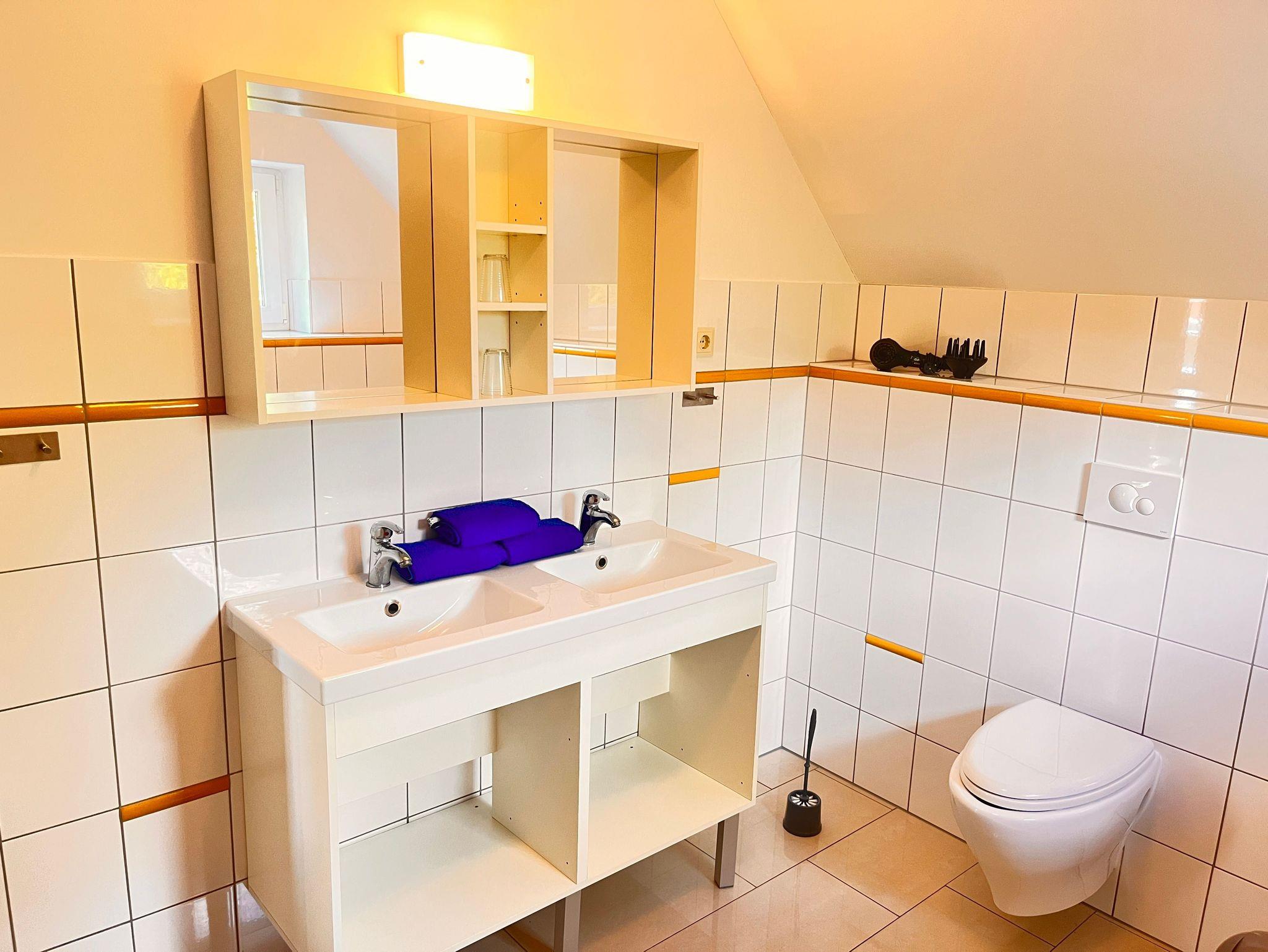 Es gibt ein eigenes Badezimmer mit Haartrockner in jeder Einheit. Bettwäsche bereit gestellt.
