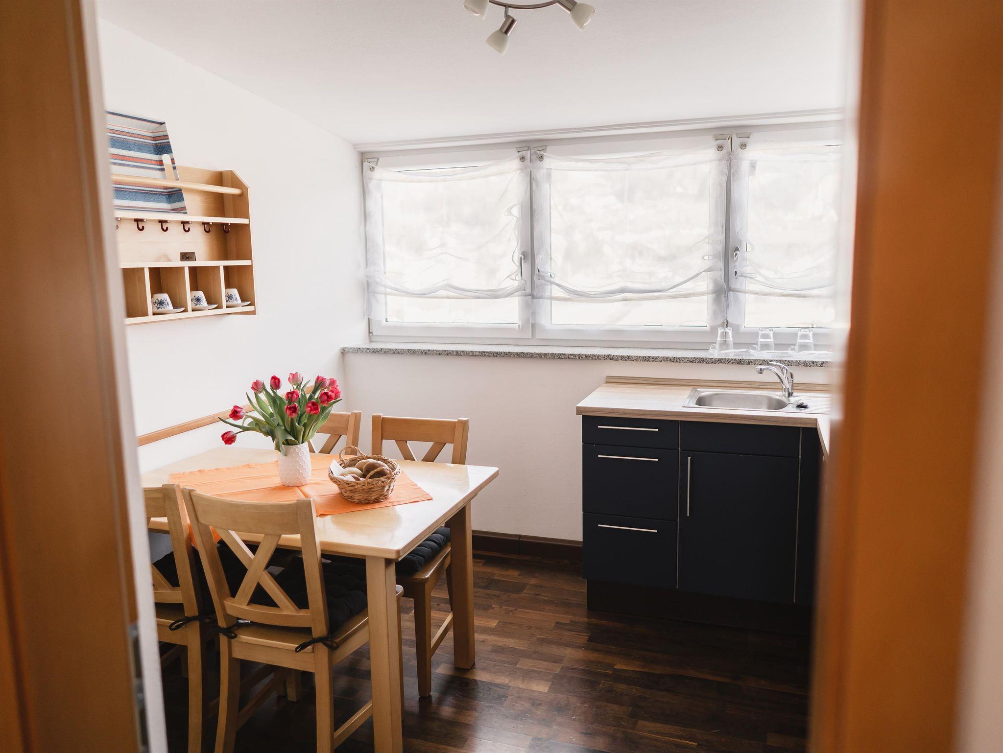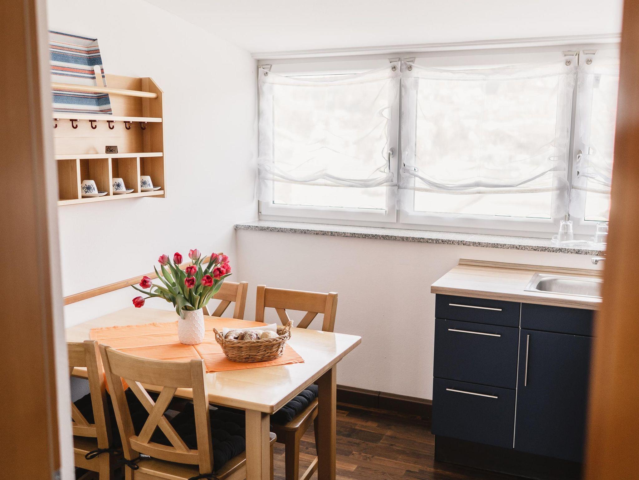 Die Belegung ist mit 4 Personen optimal, Kinderbett auf Anfrage möglich.