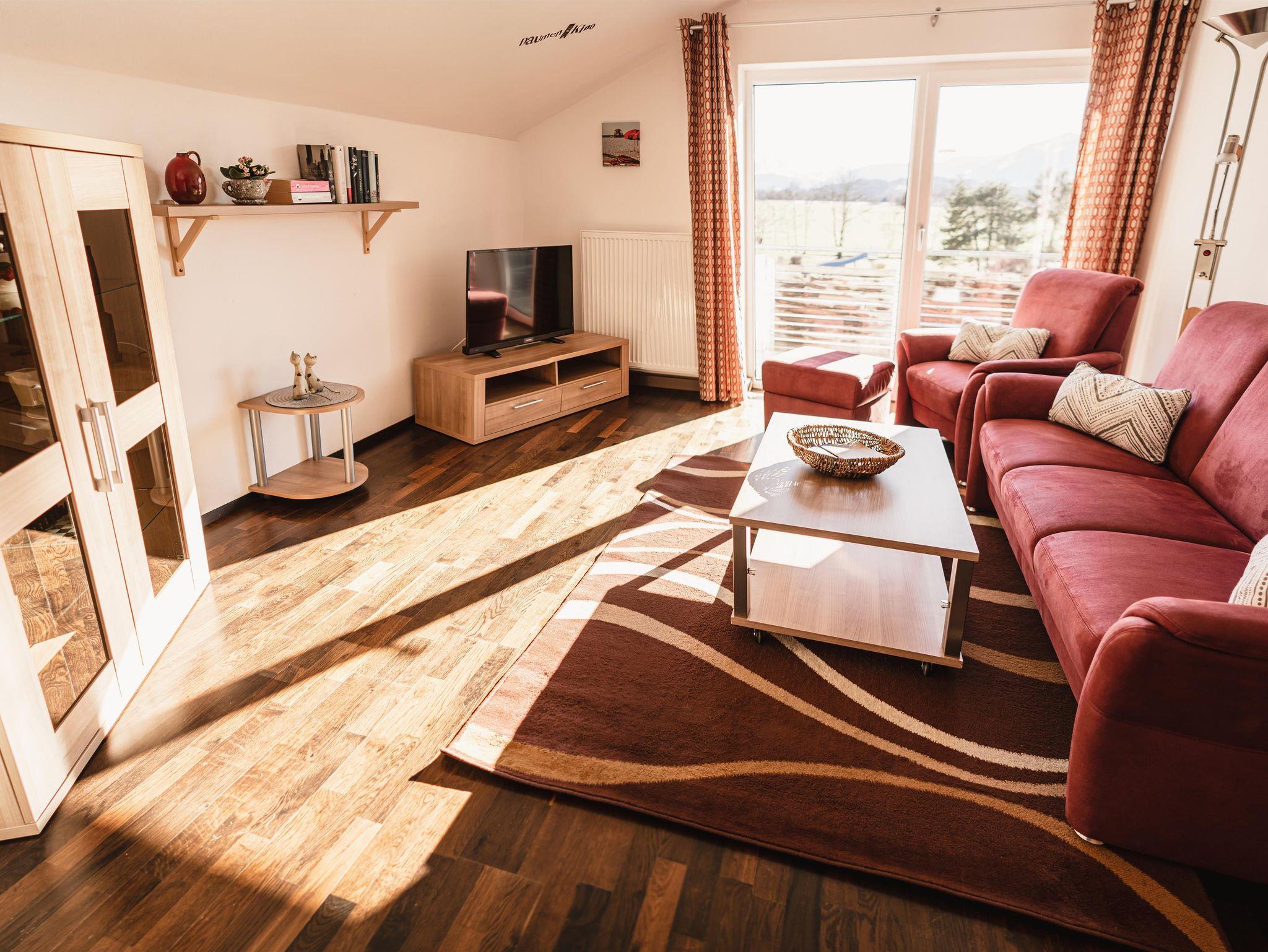 Die große Wohnung hat zwei abgetrennte Schlafräume (Doppelbett 180*200 sowie 2 Einzelbetten 90*200) einen stilvoll eingerichtetes Wohnzimmer mit großer Couch, Sat-TV und Zugang zum Südbalkon. Im Elternschafzimmer befindet sich ein weiters TV-Gerät.