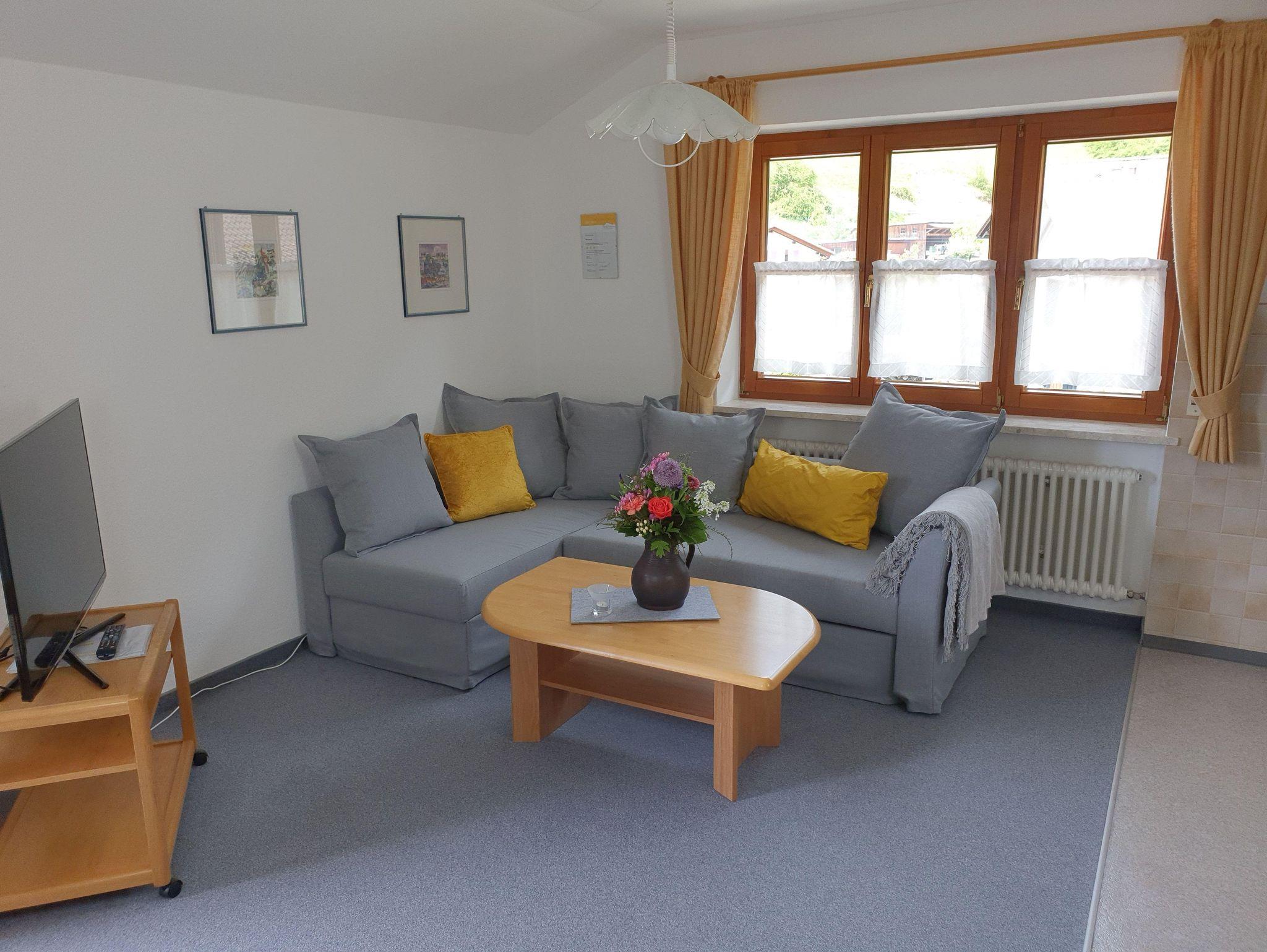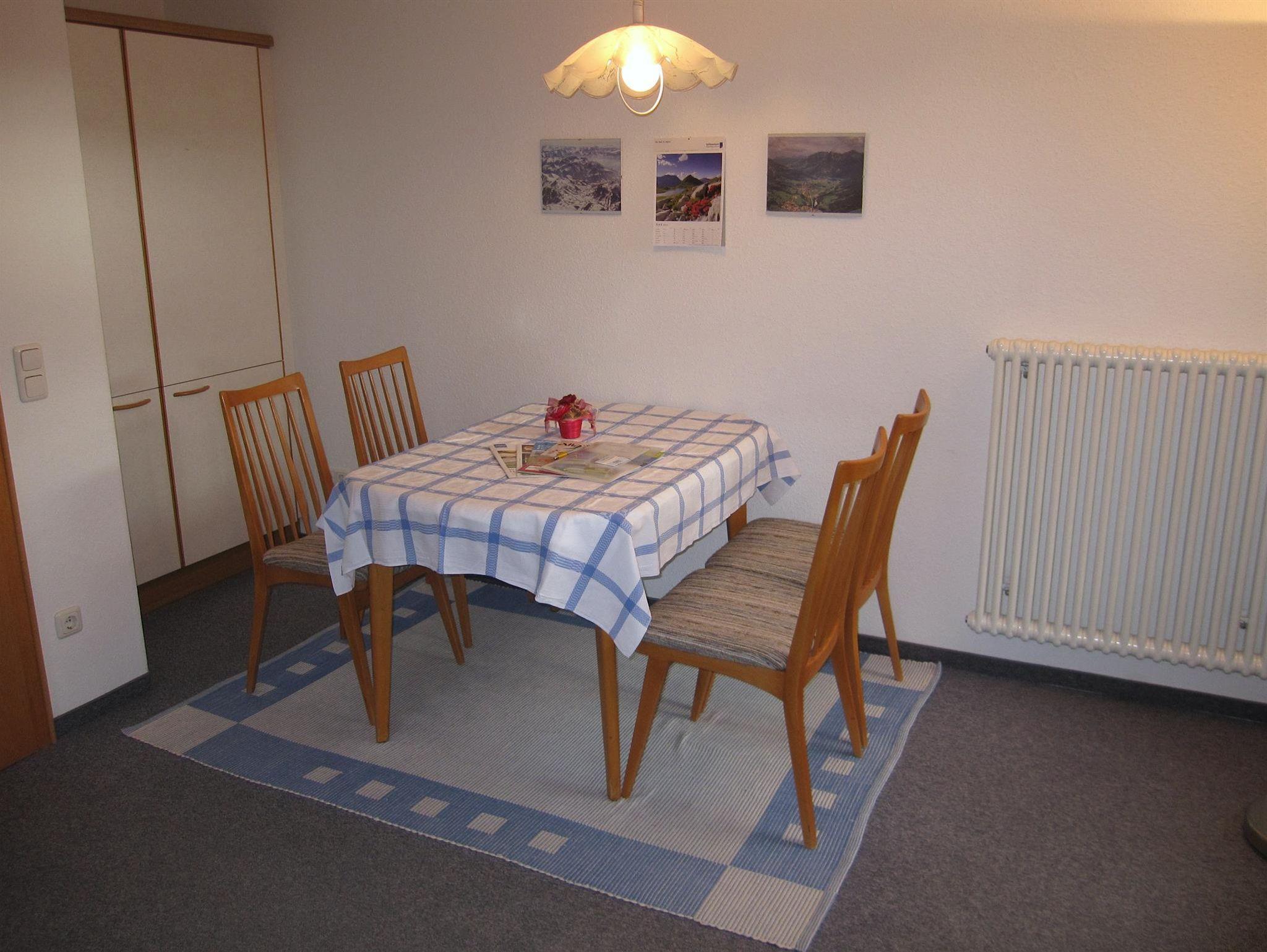 Die komfortabel eingerichtete Ferienwohnung befindet sich im 1. Obergeschoss. Vom großen Balkon aus haben Sie einen herrlichen Blick in das Illertal und auf die Berge der Hörnerkette.