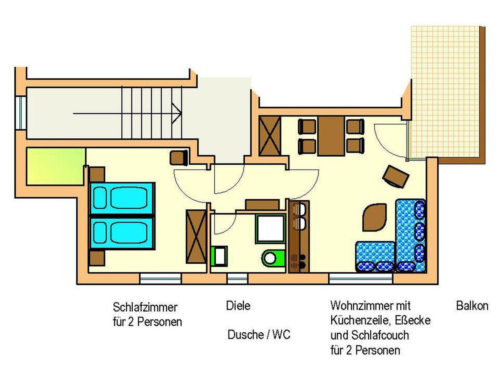 Unsere komfortabel eingerichtete Ferienwohnung befindet sich im 1. OG unseres Hauses und umfasst folgende Räume: