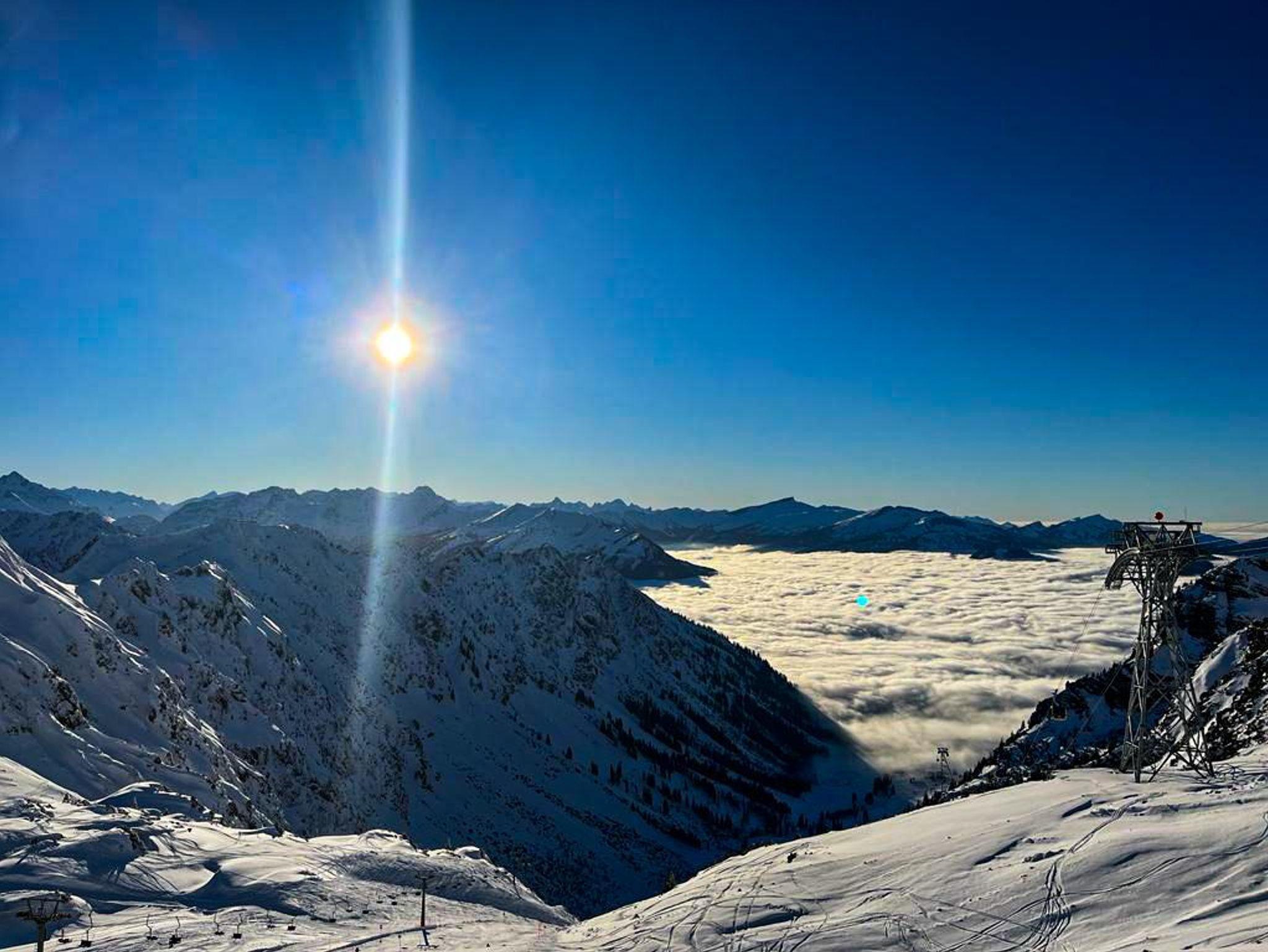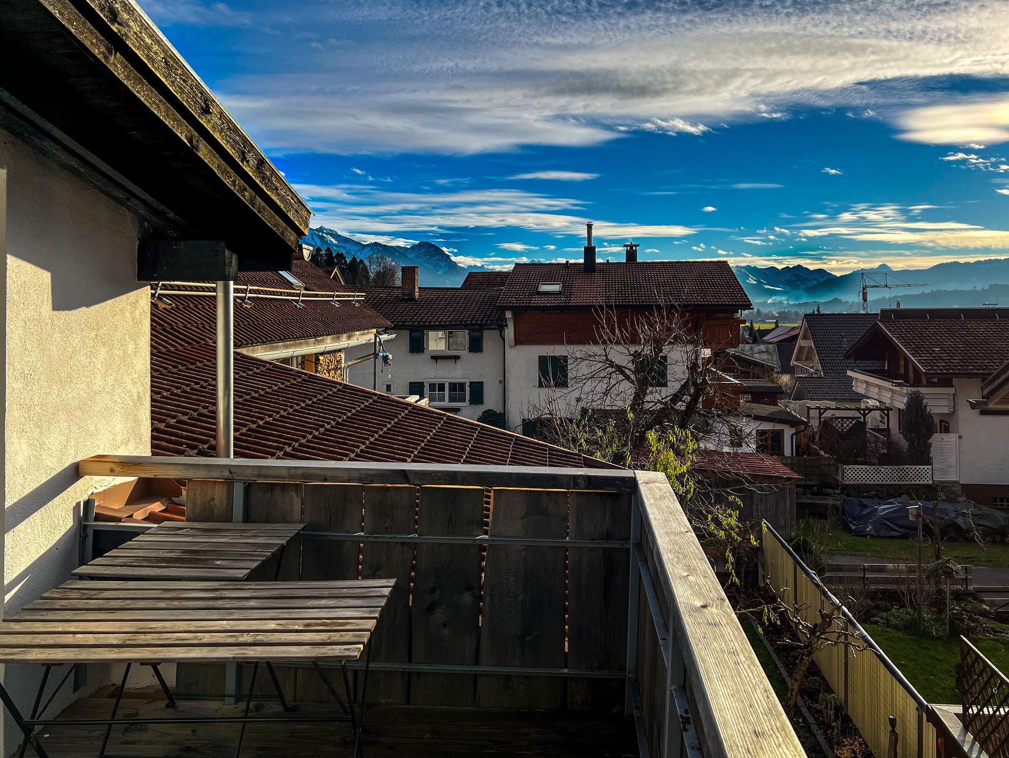 Die Dachterrasse mit Blick auf die Oberallgäuer Bergkulisse komplettiert die obere Etage und macht sämtliche Medien obsolet.