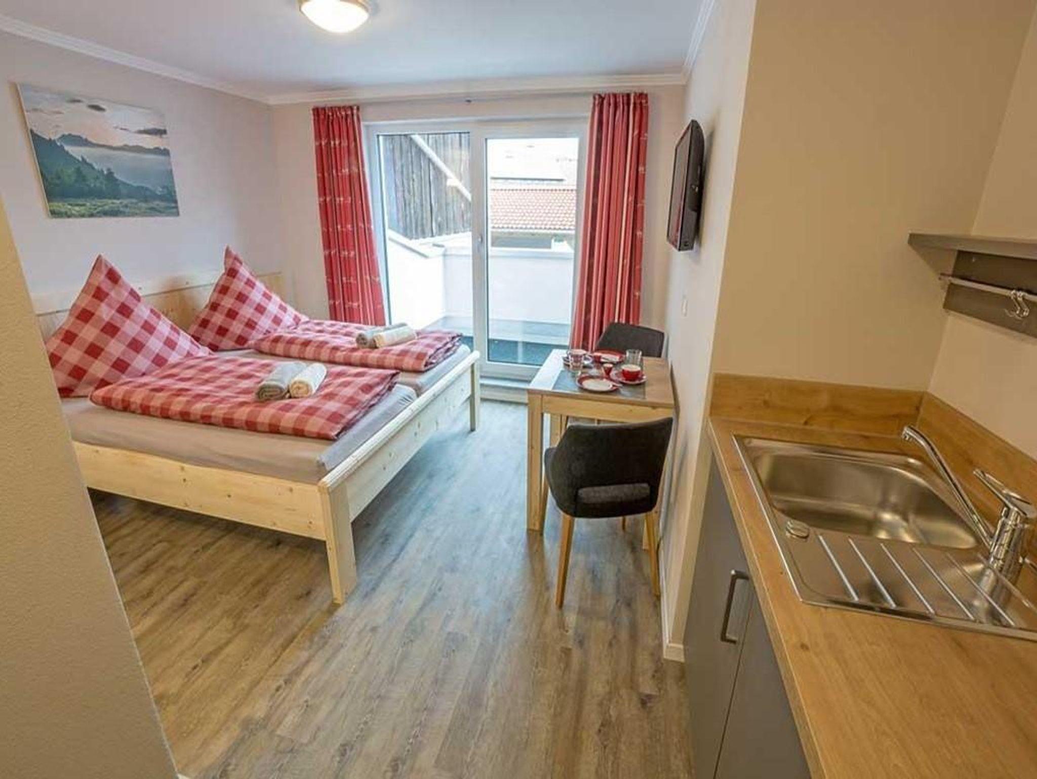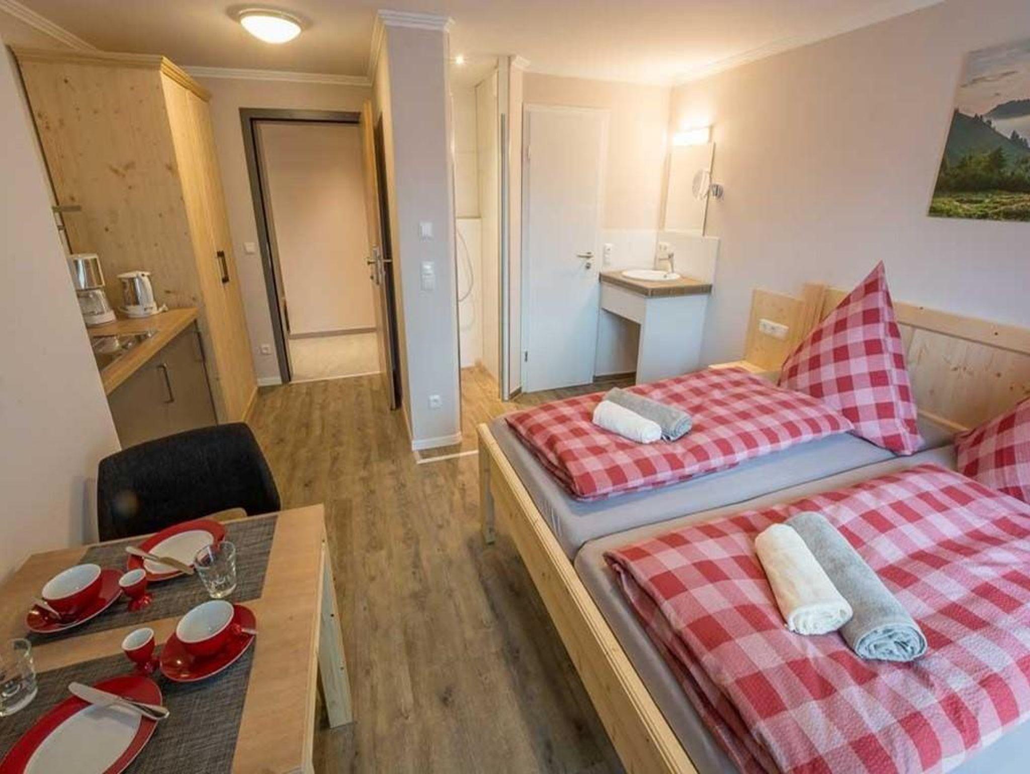 Kuschliges, komfortables Zimmer für 1-2 Personen, ruhig und sonnig mit Blick auf den Wächter des Allgäus direkt aus dem Bett, neuem Dusch- und Sanitärbereich, kleine Pantry für einen Kaffee oder Tee zwischendurch. Etwa 19 qm großes Doppelzimmer mit etwa 2,5 qm großem Balkon.