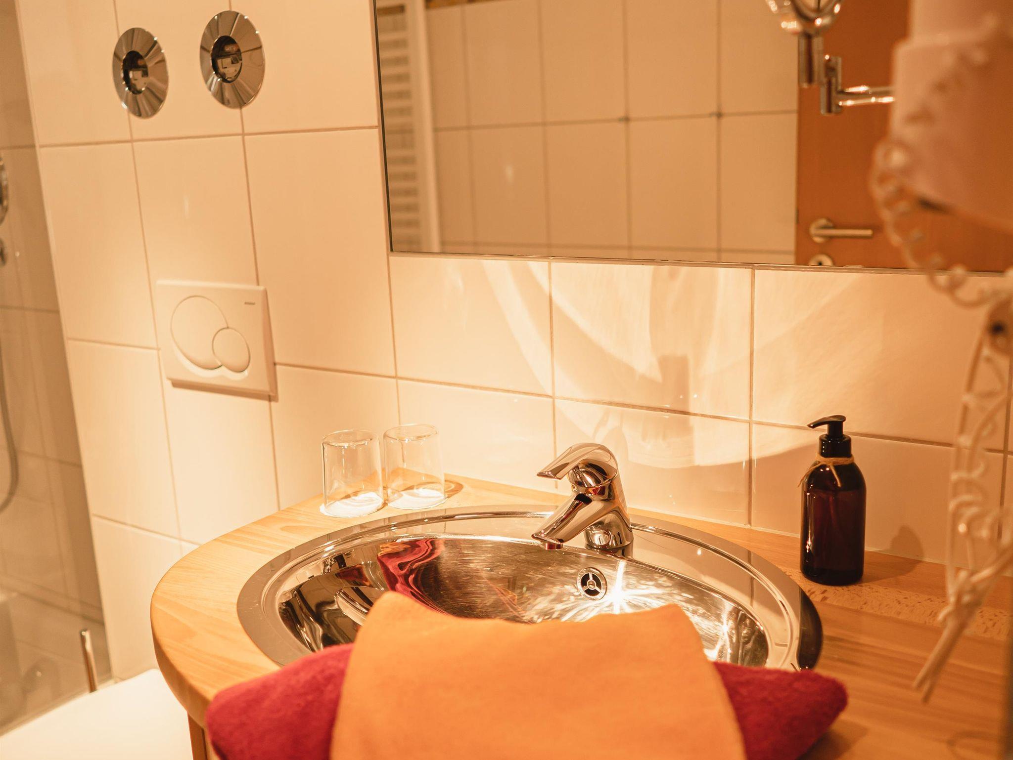 Im Badezimmer finden Sie einen Fön, Schminkspiegel, ausreichend Handtücher und weitere Kleinigkeiten.