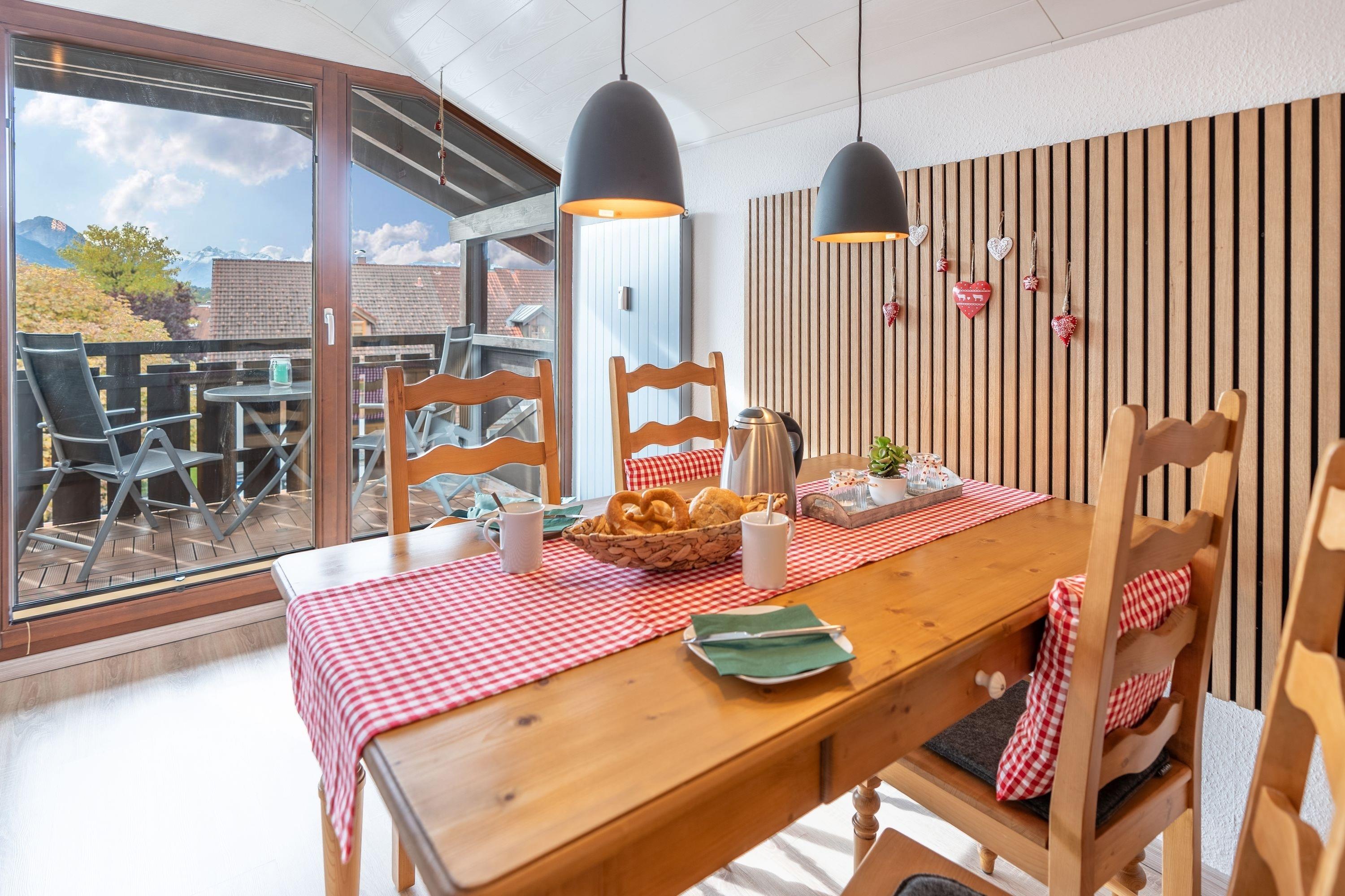 Die Ferienwohnung bietet Ihnen den perfekten Ort, um Ihren Urlaub in vollen Zügen zu genießen. Erleben Sie den Sonnenaufgang auf dem Ostbalkon und bewundern Sie den malerischen Bergblick vom Südbalkon aus. Und das Beste: Beide Balkone sind überdacht, so dass Sie unabhängig vom Wetter die frische Luft und die Aussicht genießen können.