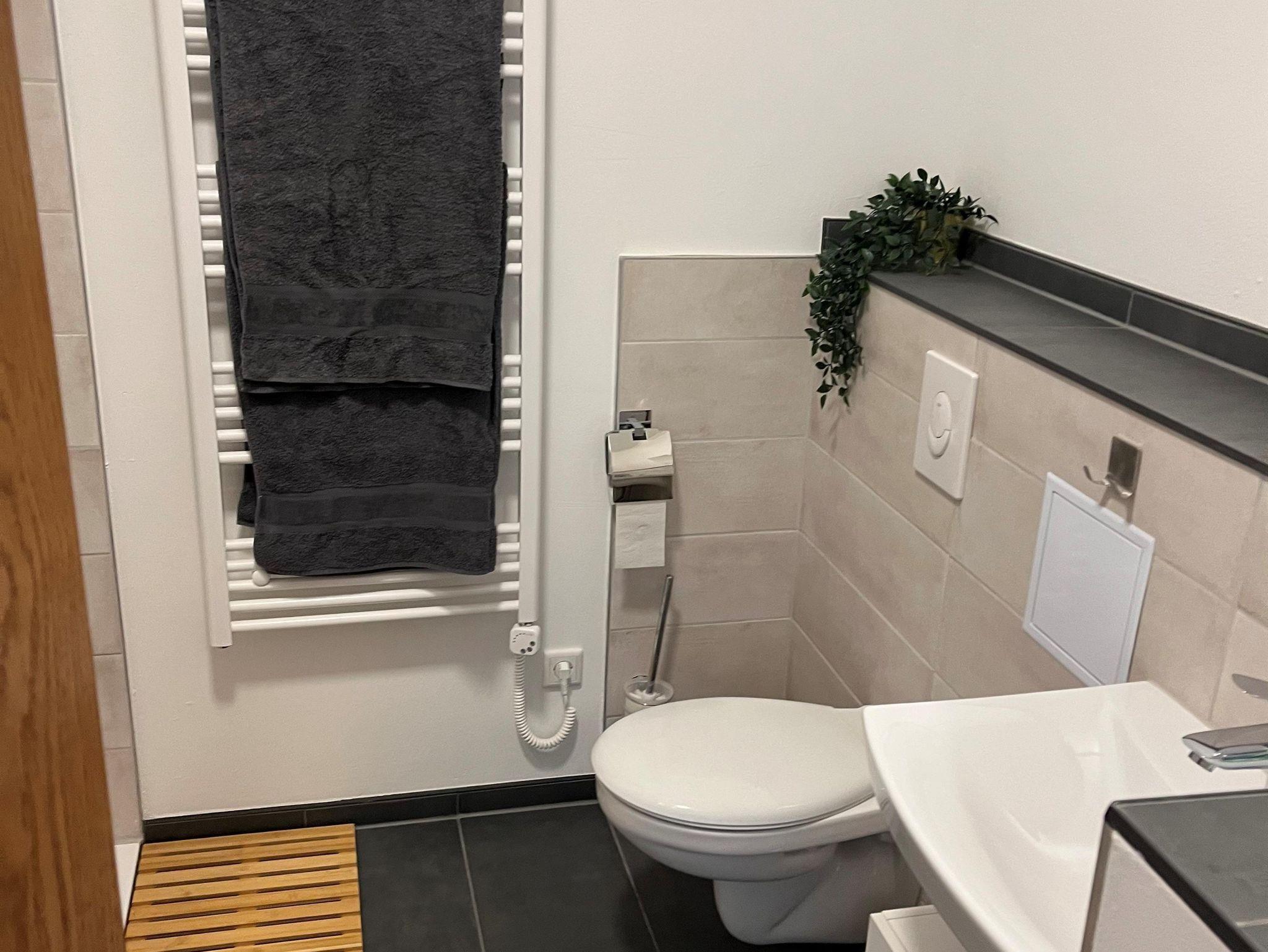 Beide Wohnungen sind komplett neu saniert, mit Rollläden an allen Fenstern (zusätzlich Plissees) und über den Hofeingang zu erreichen. Dort steht ein Grill sowie eine Sitzmöglichkeit für 6-8 Personen/Tisch mit Sonnenschirmen zur Verfügung. Fahrräder können im Hof abgestellt werden. Im Hausflur steht eine Garderobe sowie ein abschließbarer Waffenschrank zur Verfügung. Die Ferienwohnung ist mit einem Wohnzimmer mit großer Eckcouch und Couchtisch, mit offener voll eingerichteter Küche (Backofen, keine Microwelle, Kühlschrank mit Gefrierfach, 4 Ceranfelder), Esstisch mit 4 Plätzen, kleiner Schreibtisch, Fernseher. Separates Schlafzimmer mit Doppelbett, Fußende offen (160 x 200 cm ), Schrank. Badezimmer mit großer Dusche 120cm x 90cm, Waschtrockner, Fön.