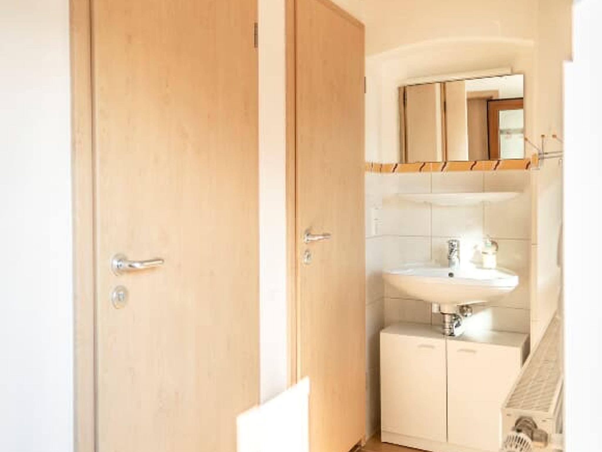 - keine eigene Sanitäreinrichtung, im nahegelegenen Sanitärbereich stehen Dusche (Einzelkabine) und WC zur Verfügung