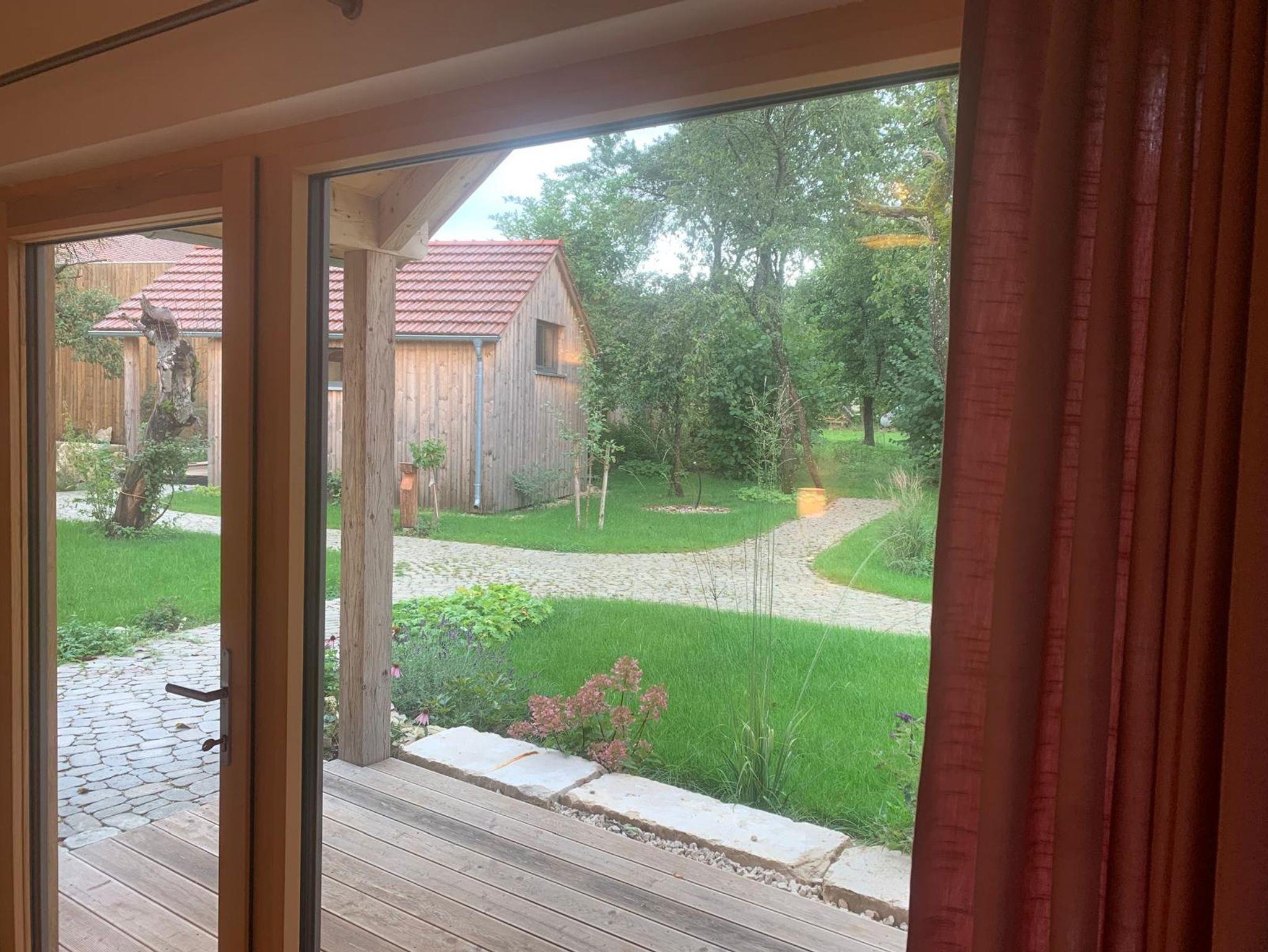 Im Naturkostladen auf unserem Biohof, welcher nur wenige hundert Meter entfernt liegt, können Sie sich mit frischem Brot, Brötchen und Backwaren aus der eigenen Vollwertbackstube sowie leckerem Bio-Käse, frischem Obst, Gemüse und Bio-Weinen eindecken.