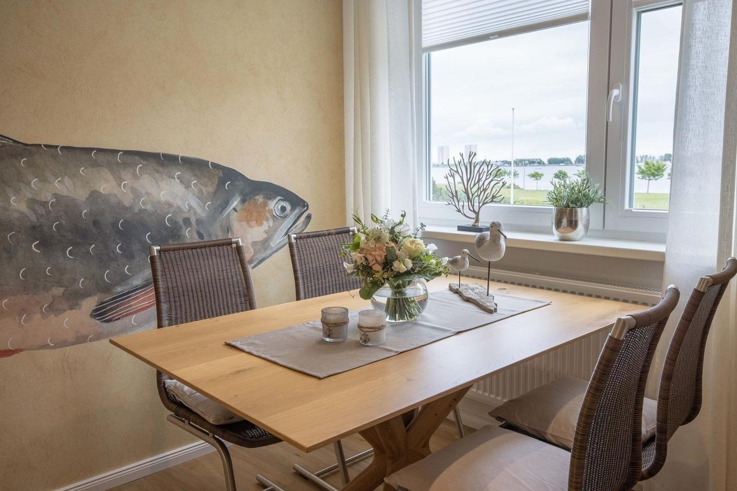 Wir heißen Sie herzlich willkommen zu dieser stilvollen und sehr hochwertigen Wohnung, in der Sie jeden Morgen einen wunderschönen Ausblick auf den Binnensee genießen können.