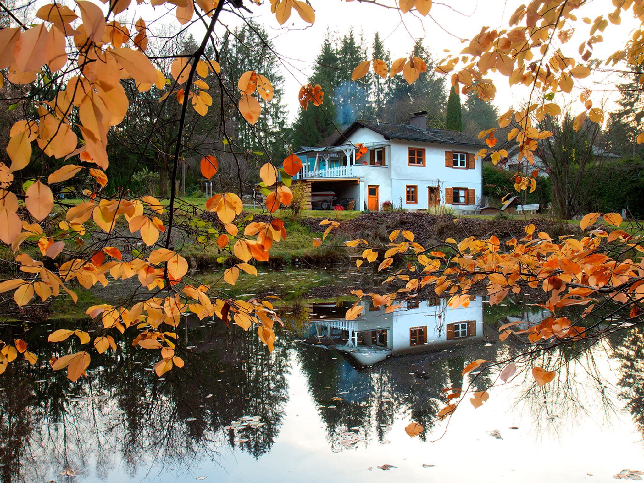 Ferienhaus am Ortsrand in idyllischer Lage, umgeben von drei Fischweihern und einem 8000 qm parkähnlichen großen Anwesen. Dazu ein angrenzendes Naturschutzgebiet. Man kann total aus dem Alltag aussteigen und ankommen an einem ganz besonderen Ort in purer Natur. Der kleine Ort liegt im landläufig bezeichneten Kleintirol. Es gibt Wanderwege in alle Richtungen, es laden Mountainbiken, Radfahren am alten Kanal zur Freizeitgestaltung ein; Golfplätze sind in nächster Nähe. Gemütliches Wohnen im Haus - antike Möbel und der Kachelofen schaffen die entsprechende Atmosphäre bei zeitgemäßem Standard. Grillen, Lagerfeuer, Bootfahren, Tischtennisspielen möglich. Man kann sich nur wohlfühlen.