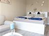 Im Badezimmer finden Sie eine große Dusche, ein Waschbecken sowie ein WC. Das maritime Wohn-Schlafzimmer ist ausgestattet mit einem bequemen Bett in den Maßen 1,80m x 2,00m mit neuer hochwertiger Matratze. Außerdem können Sie sich auch auf dem gemütlichen Sofa, dass sich von einer 3. Person auch als Schlafsofa nutzen lässt, vor dem 43 Zoll TV bequem machen.