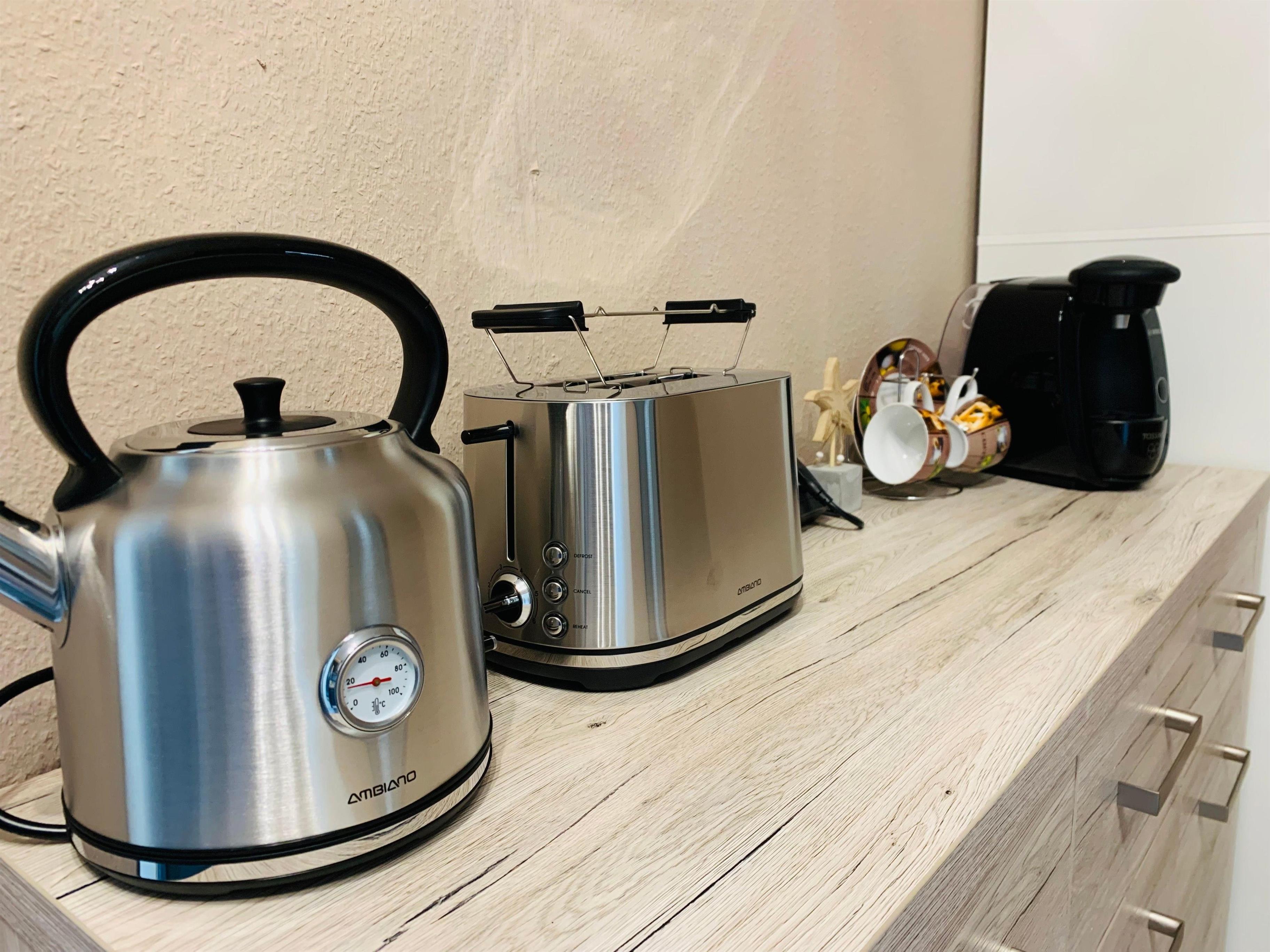 Die Küche bietet genügend Möglichkeiten zur Selbstversorgung und ist mit allen notwendigen Geräten (Kühlschrank, zwei Induktions-Kochplatten, Mikrowelle, Toaster, Wasserkocher, Bosch Tassimo für den schnellen Kaffee oder Teegenuss usw.) ausgestattet.