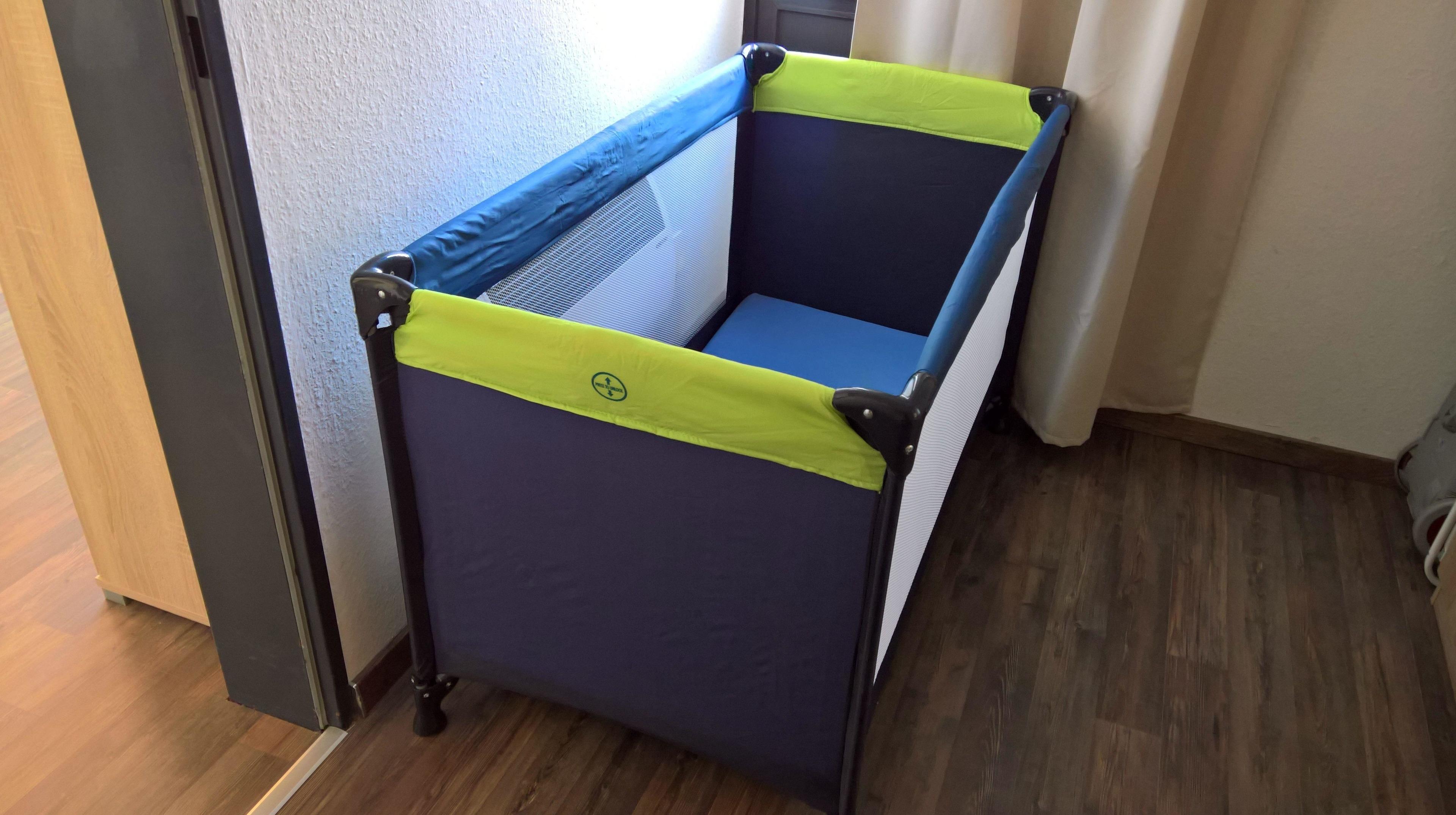 Für die "Zwerge" gibt es ein Babyreisebett mit dicker Matratze und einen Kinderhochstuhl.
