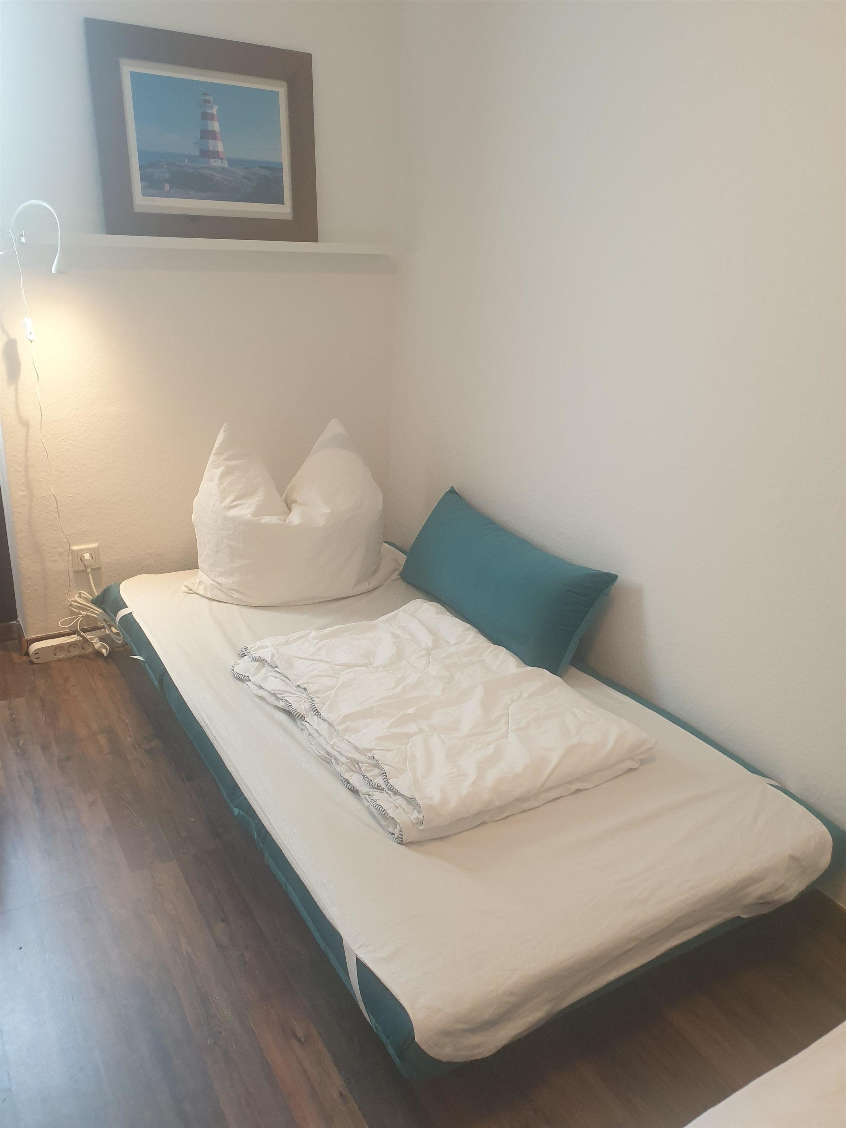 In der frisch renovierten Ferienwohnung erwartet Sie ein maritim eingerichteter Wohn-Schlafraum und ein weiterer Schlafraum.