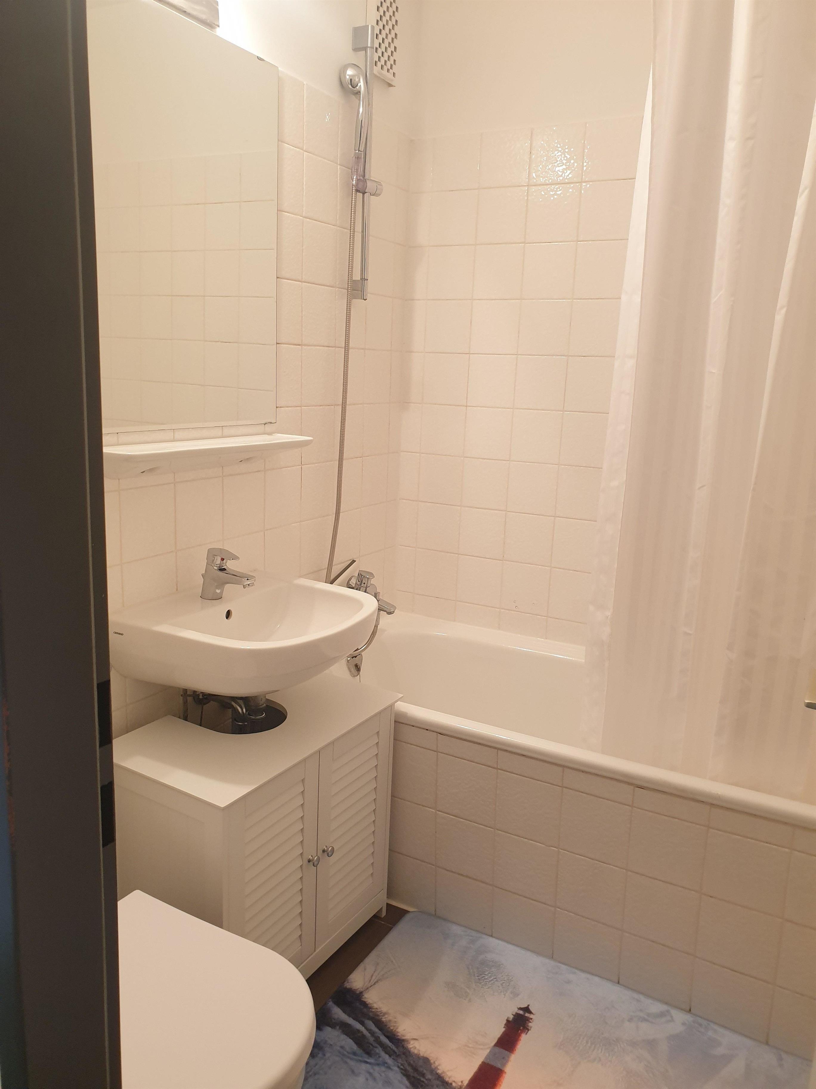 Das Bad ist mit einer Badewanne inkl. Dusche ausgestattet.