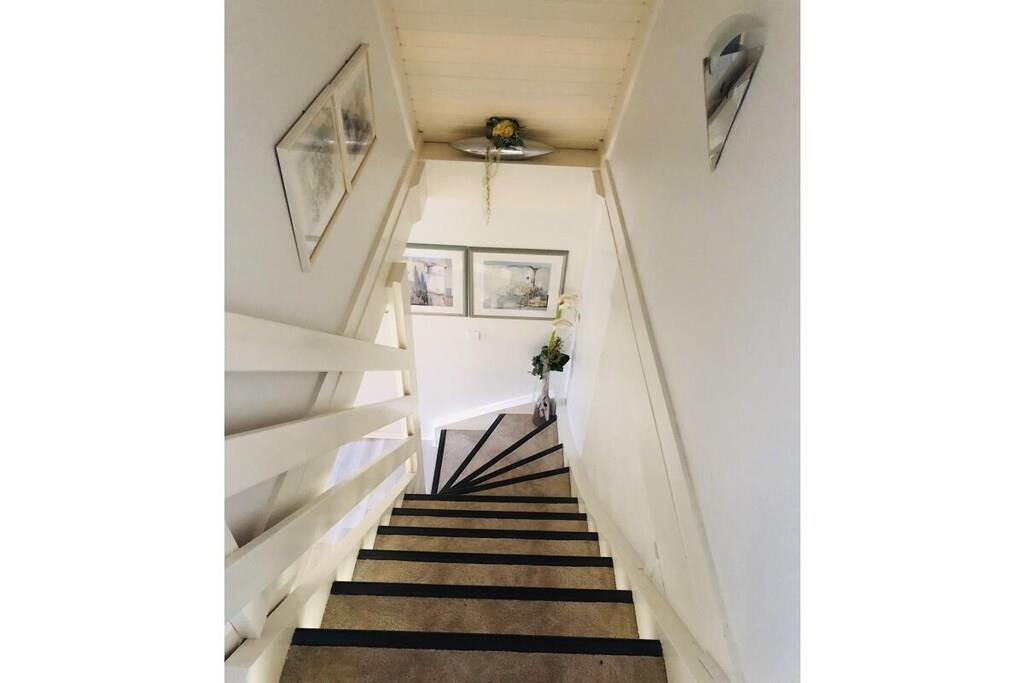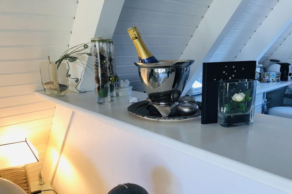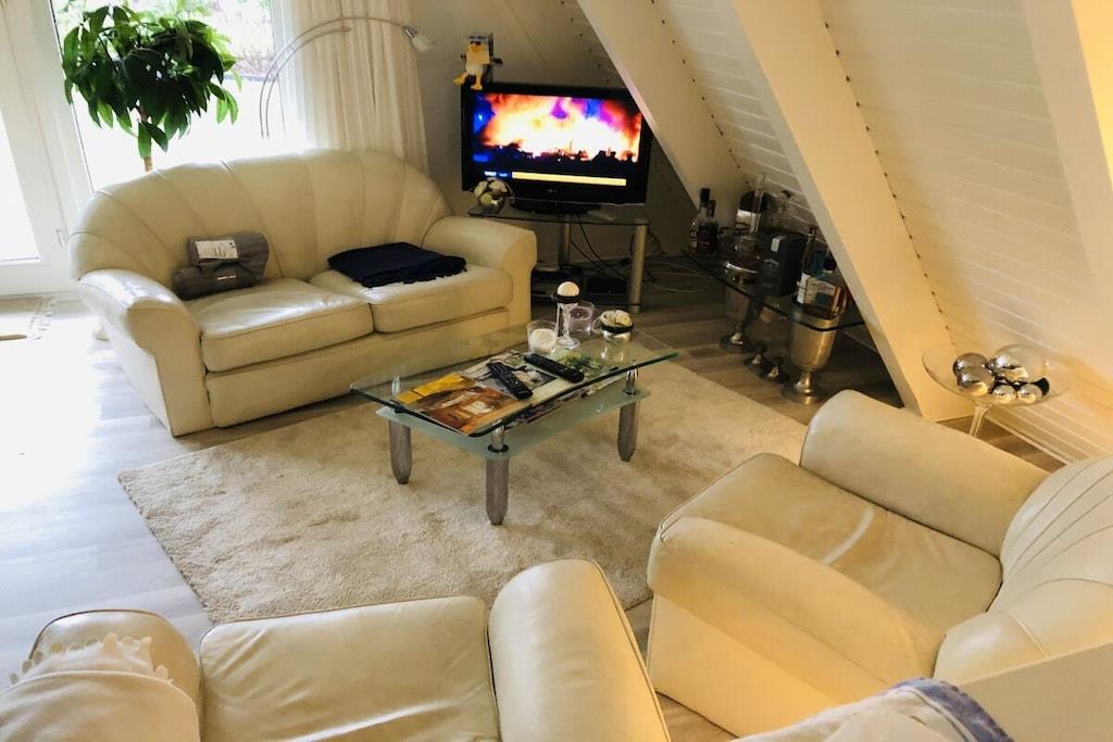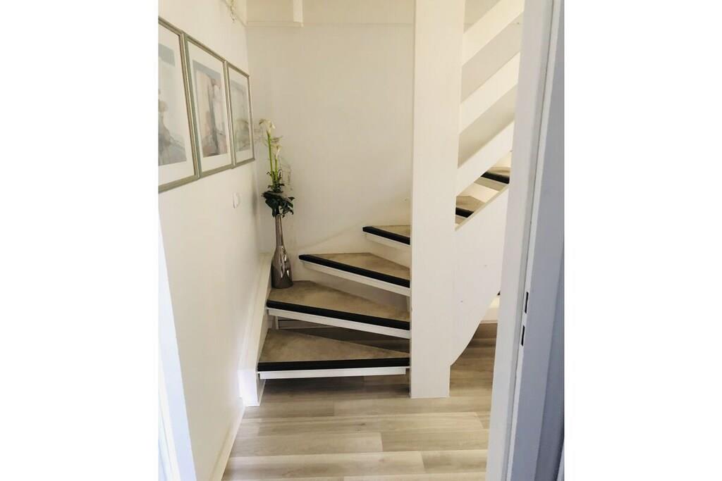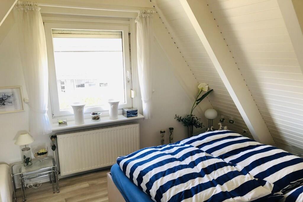 Ground floor: (hallway(Mirror, Wardrobe Coatrack), Kitchen(Spices, Kitchenette, hob, electric kettle, toaster, coffee machine, dishwasher, fridge), Living/diningroom(Armchair, Sofa, TV, dining table, DVD player, radio), bedroom(Sofa, double bed, insect screens), bathroom(Make Up Mirror, Mirror, toilet, shower, washbasin, hairdryer)) On the 1st floor: (bedroom(Armchair, Wardrobe, double bed, radio, insect screens)) Hot Water, Internet Access DSL, Vacuum Cleaner, Internet access, heating, terrace(Lawn, grill, garden furniture, awning), garden(Lawn)