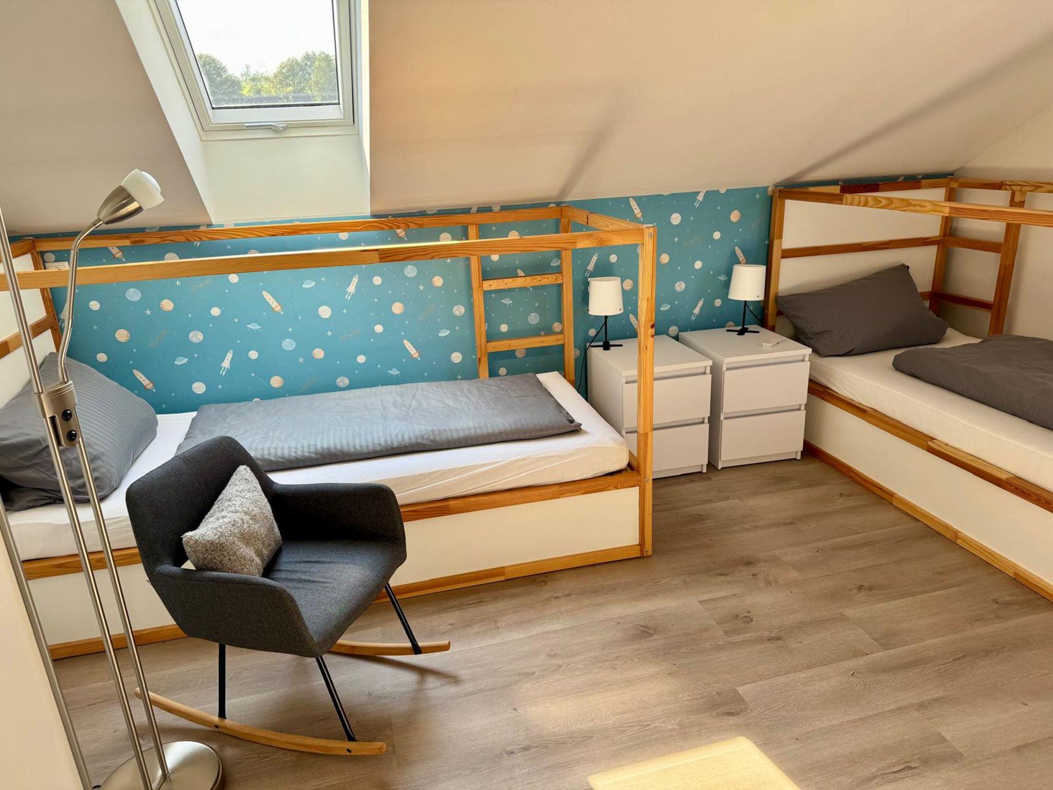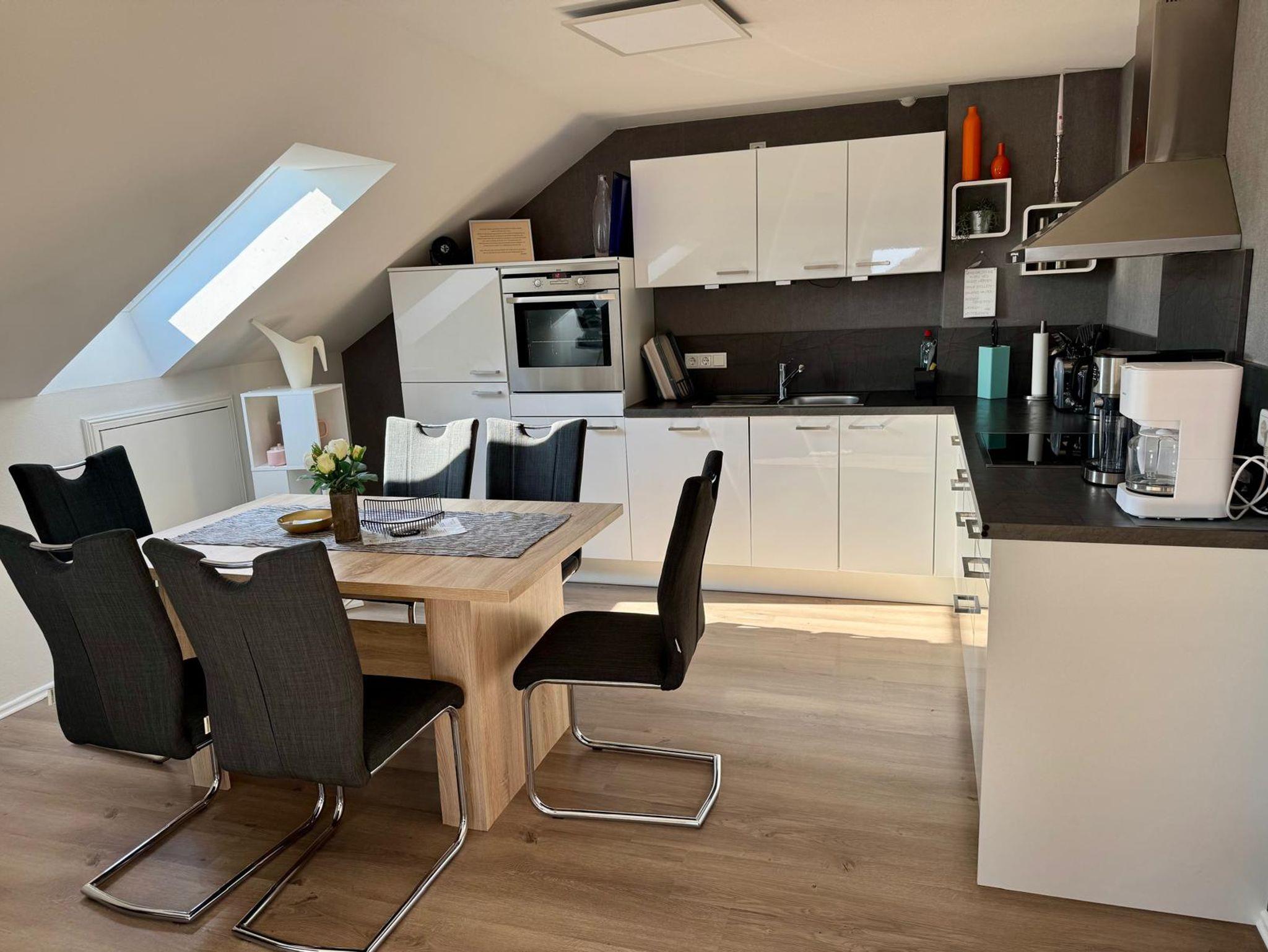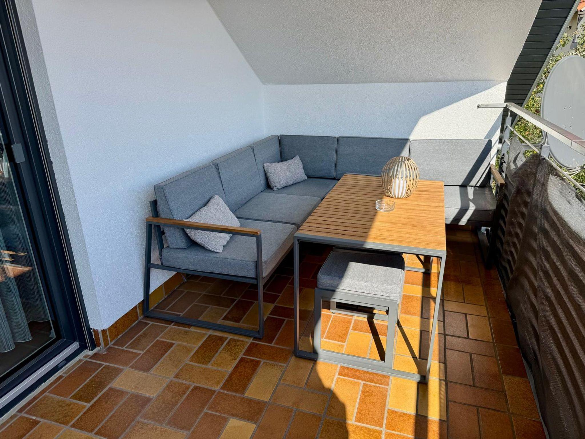 Die modern renovierte Ferienwohnung bietet Platz für bis zu 6 Personen und ist damit bestens geeignet für Familien, Paare oder auch Senioren. Sie verfügt über zwei Schlafzimmer – eines mit Doppelbett, das andere mit zwei Einzelbetten und einem großen Etagenbett – sowie ein großzügiges Badezimmer mit Dusche, WC, Handtüchern, Seife, Shampoo und Haartrockner. Der helle Wohn- und Essbereich mit voll ausgestatteter Küche, Esstisch, Flachbild-TV und sogar einem Reebok Laufband sorgt für Komfort und Abwechslung. Ein Balkon mit Relaxliege und Loungemöbeln lädt zum Entspannen ein. Kostenloses WLAN sowie ein PKW-Stellplatz am Haus (bei Bedarf auch ein Fahrradstellplatz in der Garage) runden das Angebot ab. Hier finden Sie alles, was Sie für erholsame und unbeschwerte Urlaubstage brauchen.