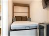 Diese kompakte, aber clever gestaltete Wohnung nutzt jeden Quadratmeter optimal aus. Der Wohn- und Schlafbereich ist mit einem Schrankbett ausgestattet, das bei Bedarf einfach verstaut werden kann, um den Raum flexibel zu nutzen. Ein TV im Schlafzimmer sorgt für gemütliche Unterhaltung. Das moderne Badezimmer verfügt über eine ebenerdige Dusche und ein WC. Der Essbereich mit ausklappbarem Tisch schafft bei Bedarf mehr Platz, während die kleine Küchenzeile alles bietet, was Sie zur Zubereitung Ihrer Mahlzeiten benötigen.