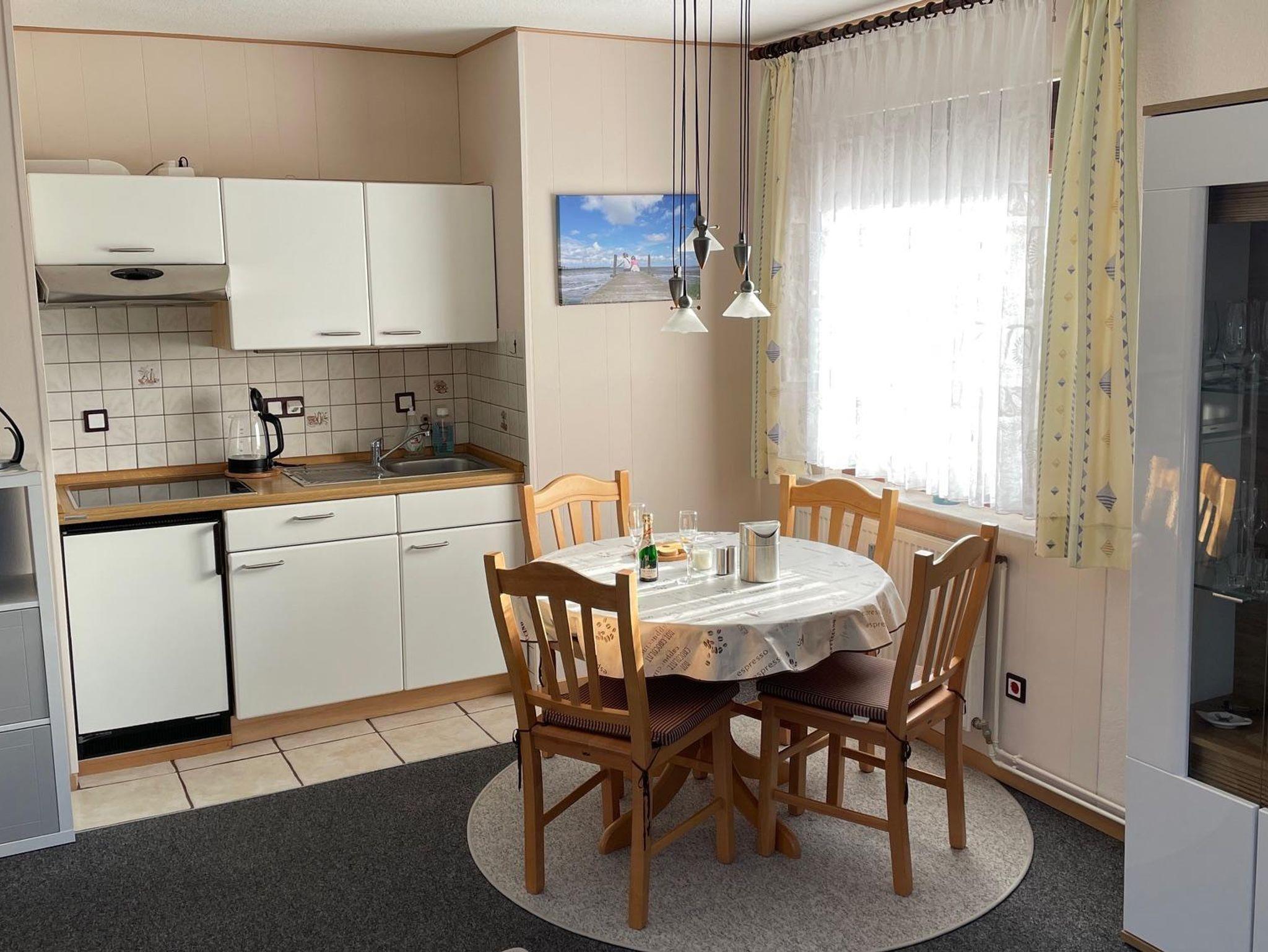 Die Wohnung ist mit einer Küchenzeile mit 4 Kochfeldern, inkl. Mikrowelle mit Grillfunktion ausgestattet. Außerdem finden Sie einen Eierkocher, Toaster, Wasserkocher und eine Kaffeemaschine vor Ort. Der Kühlschrank ist mit einem kleinen Gefrierfach ausgestattet. Eine Spülmaschine, sowie einen Backofen können wir aktuell nicht bieten. Dafür ist die Wohnung mit Sat-TV, DVD-Player und kostenlosem Wi-Fi ausgestattet. Damit ist sie der ideale Ort für einen entspannten Urlaub. Ihre Kinder sind bei uns selbstverständlich herzlich willkommen! Wir freuen uns natürlich auch über Ihre kleinen bis mittelgroßen Hunde, die Sie gern mitbringen können. Burhave bietet Ihren Vierbeinern eine Hundewiese sowie einen Hundestrand.