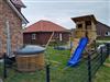 Es gibt einen eigenen großzügigen Garten, der komplett eingezäunt ist. Ebenso finden Kinder tolle Überraschungen, wie den großen Spielturm mit Sandkasten. Außerdem gibt es einen beheizbaren Holzpool, welcher auch bei kälteren Jahreszeiten genutzt (Nutzung gegen eine kleine Gebühr) werden kann. Im Garten vor dem Haus, befindet sich ein Wellnessbereich mit einer tollen finnischen Gartensauna (Nutzung gegen eine kleine Gebühr) mit Regendusche und Entspannungsmöglichkeiten.