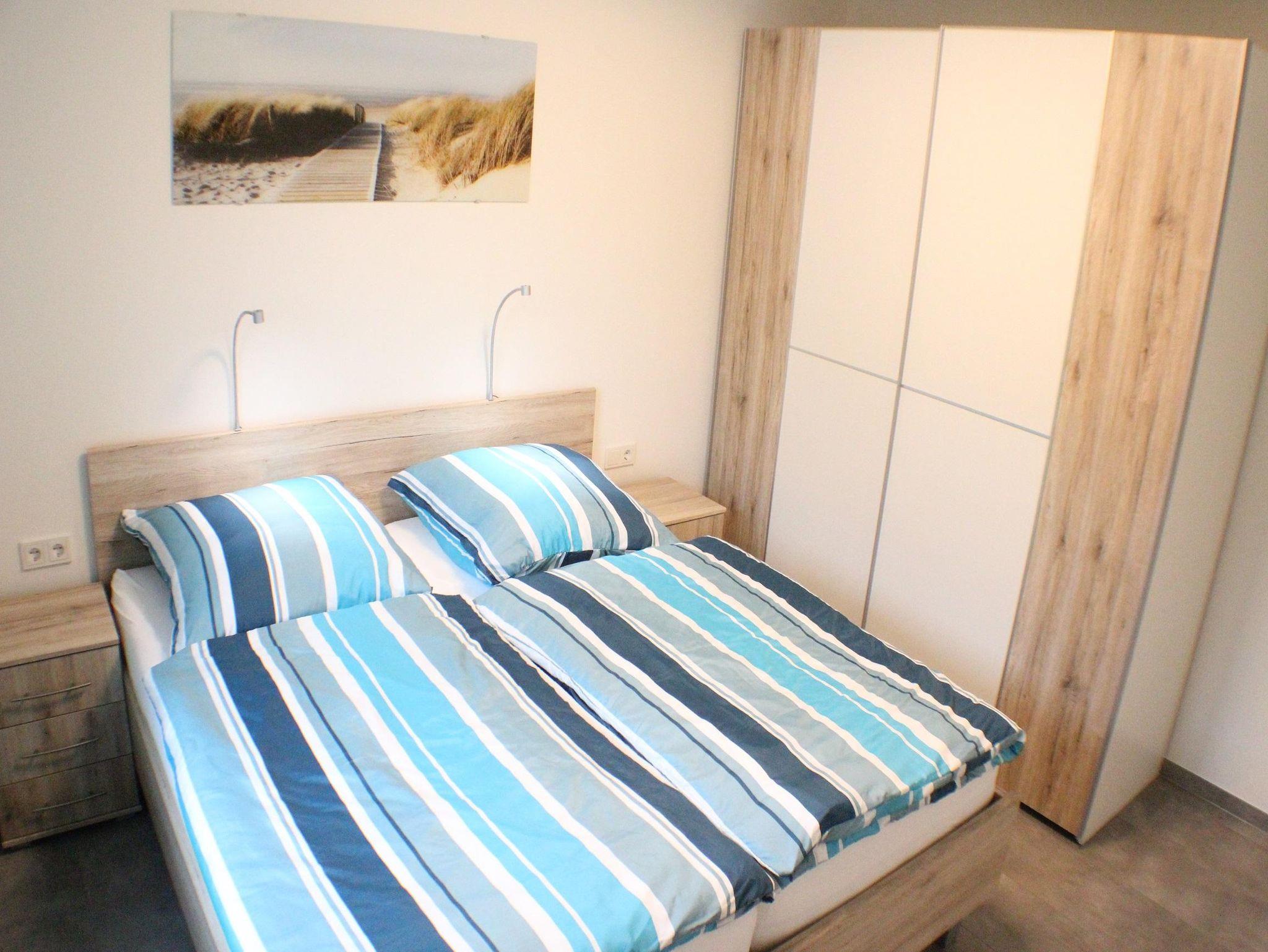 Schlafzimmer 1: TV SAT/Kabel, Babybett (65x125 cm), Doppelbett (180x200 cm), Kleiderschrank, Fußbodenheizung, Fliegengitter, Spiegel, Steckdosensicherung, Fenster