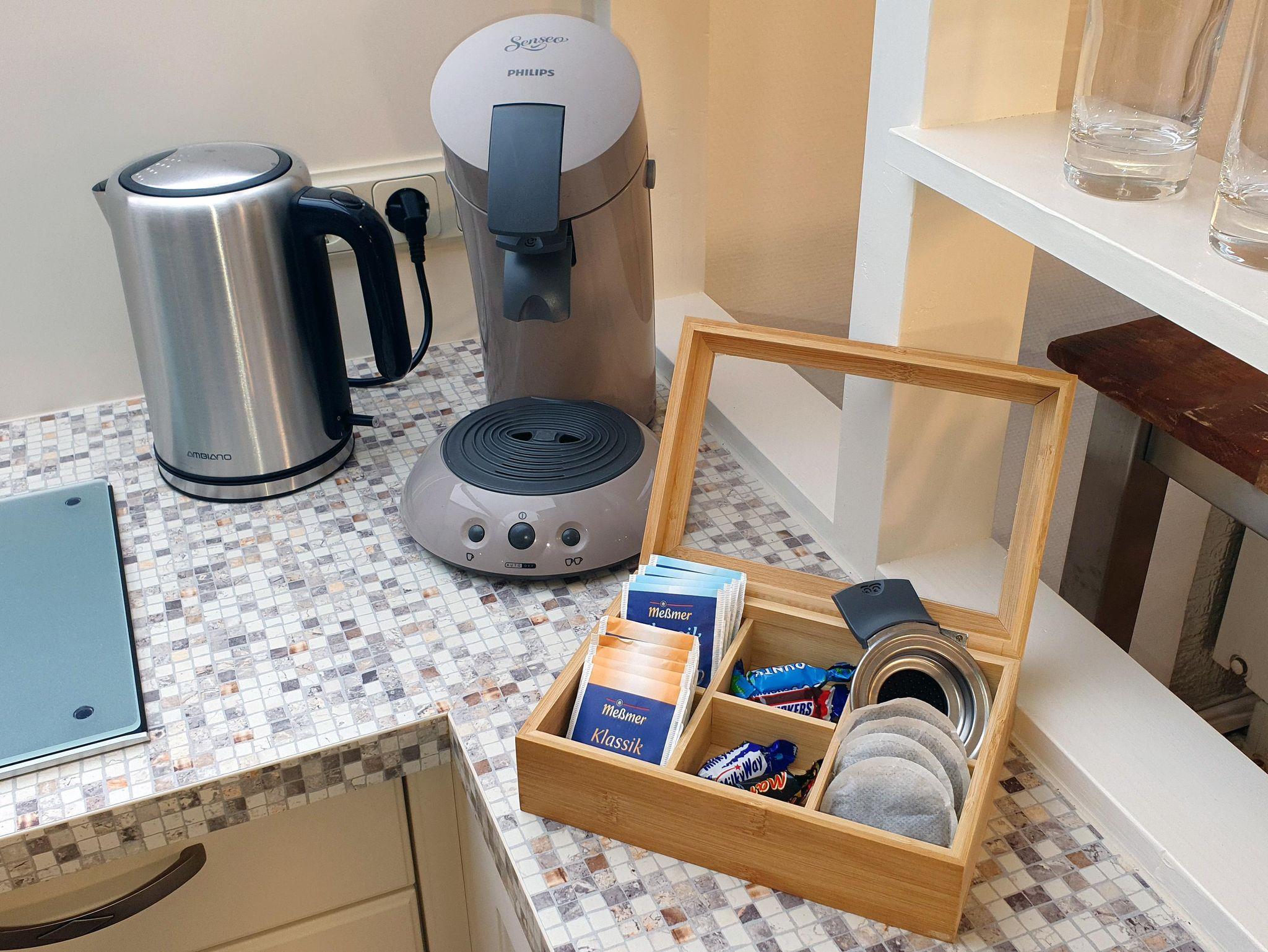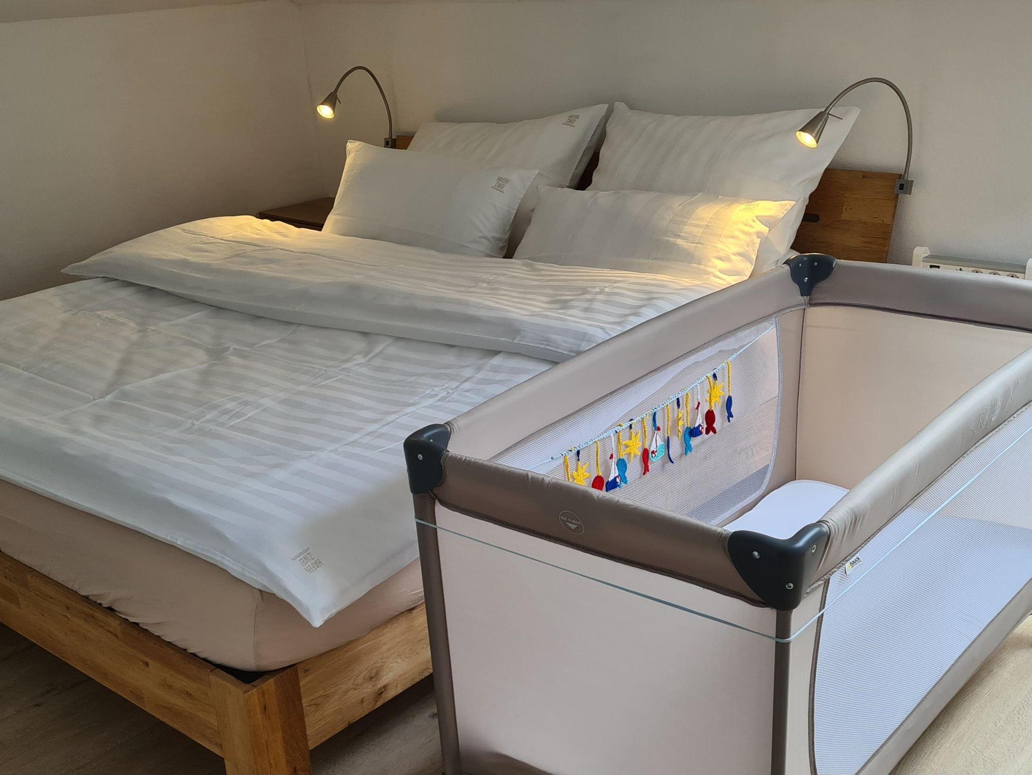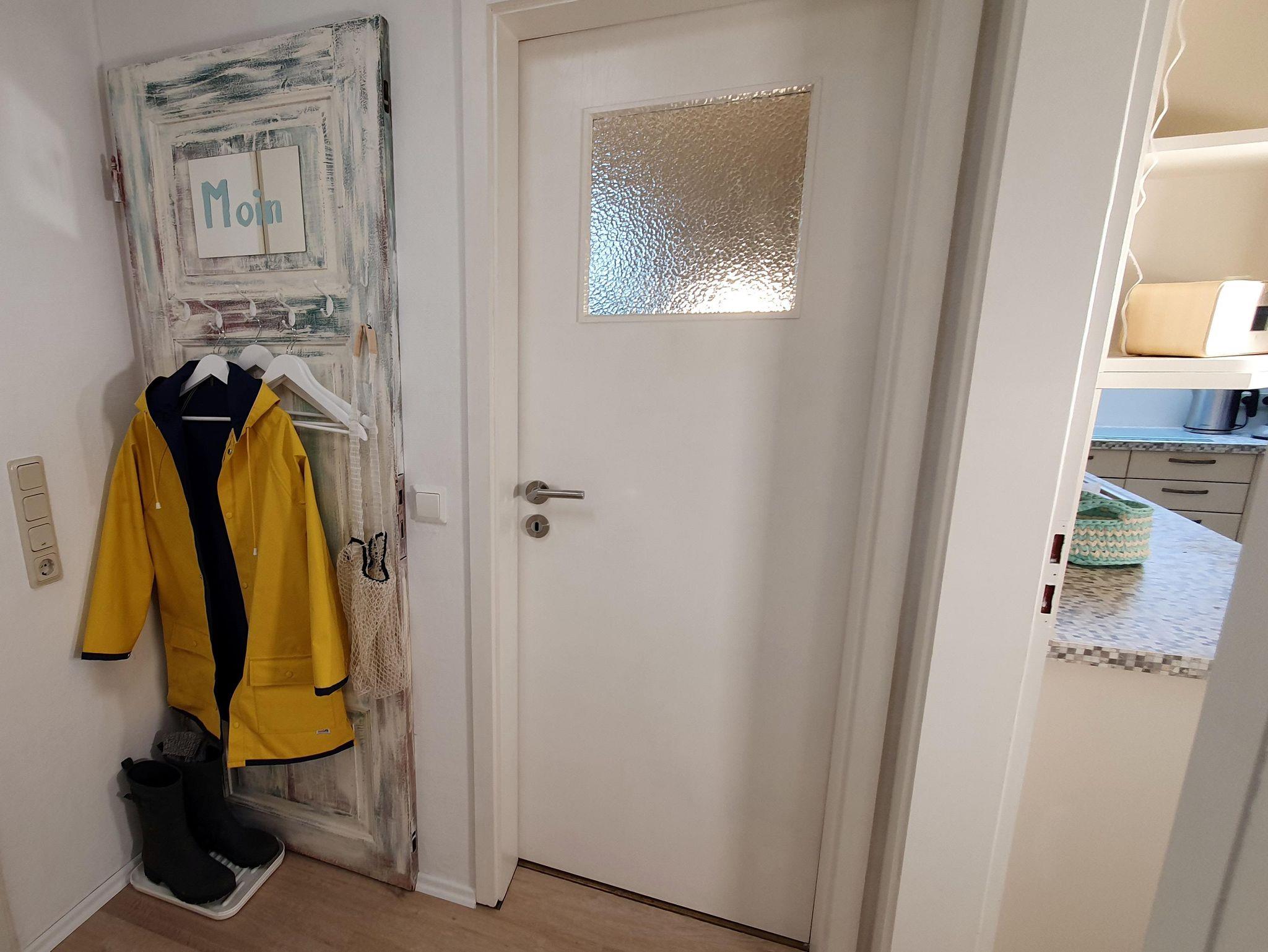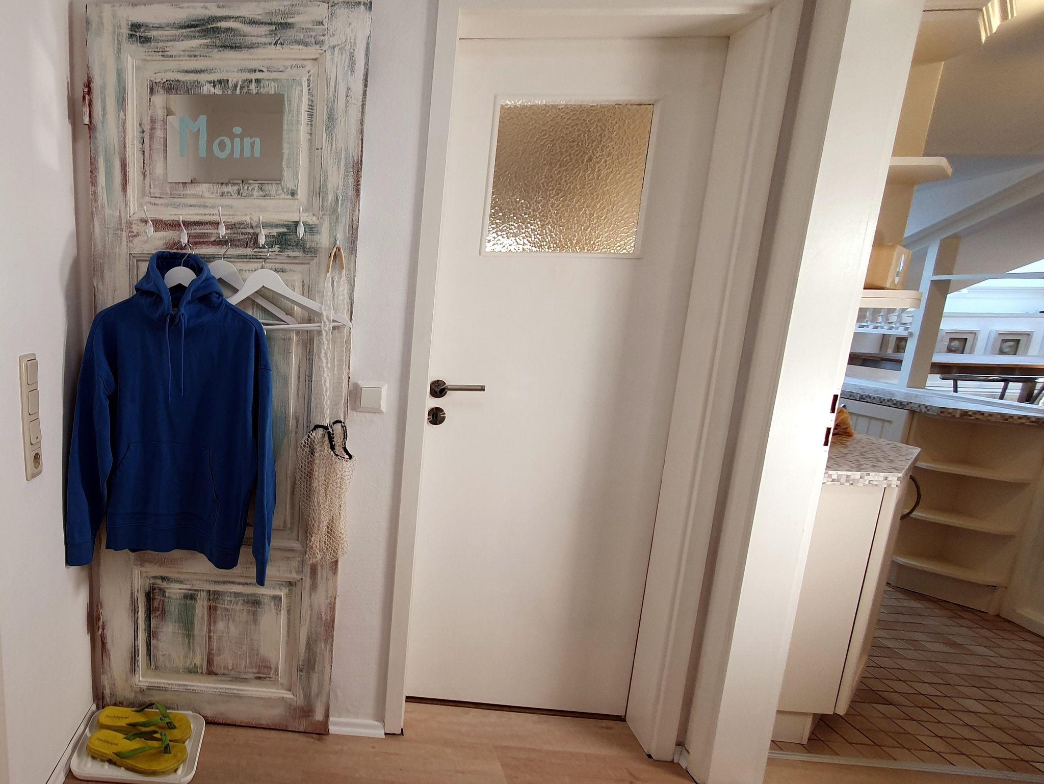 Beim Betreten der Wohnung im Dachgeschoss in der zweiten Etage gelangen Sie in einen kleinen Flur mit Garderobe, Spiegeln und Schränken mit reichlich Stauraum. Zur linken Seite befindet sich das Badezimmer mit WC, Eckdusche und Badewanne. Ihr Bad können Sie unter einem künstlichen Sternenhimmel genießen. Der echte Sternenhimmel ist durch das Dachfenster zu beobachten. Wenn Sie vom Flur weiter geradeaus gehen, gelangen Sie in den Wohnraum mit abgetrennter Küche. In der sehr gut ausgestatteten Küche befinden sich als Sonderausstattung ein Geschirrspüler, eine Waschmaschine/Wäschetrockner, ein kleiner Backofen und ein Induktionskochfeld. Damit stehen Ihrem genussvollen Essen keine Hindernisse im Weg. Ihren duftenden Kaffee können Sie in einer Senseo, Filterkaffeemaschine oder Frenchpress zubereiten, eine kleine Auswahl an Teesorten steht ebenfalls für Sie bereit. Im Wohnraum erwartet Sie eine hohe Esstheke mit Barhockern für ein wohlschmeckendes Essen mit einem traumhaften Blick auf den Hafen, die Marsch, den Nationalpark und die Nordsee. Von langen Wanderungen an der Küste können Sie sich auch auf dem Sofa erholen. Ein Smart-TV erlaubt Ihnen die Nutzung von kostenfreien Streamingdiensten. Eine Sennheiser Ambeo Soundbar plus sorgt für den richtigen Sound. Mobiles Arbeiten ermöglicht ein kleiner Tisch mit zwei Stühlen. Hier steht auch ein ausklappbares komfortables Schlafsofa für 2 Personen. Hinter dem Wohnzimmer schließt sich das Schlafzimmer an, in dem ein weiterer Tisch mit Stuhl, ein Kleiderschrank und zusätzlicher Stauraum genutzt werden können. Das Doppelbett hat eine komfortable Breite von 180cm, Bettdecken und Kopfkissen sind Allergiker freundlich. Im Schlafzimmer ist ein Dachfenster, von dem aus Sie ebenfalls auf die Nordsee gucken können. Alle Dachfenster sind verdunkelbar und sind, bis auf das Bad mit Insektengittern versehen. Ebenfalls Am Hafen, nur ein paar Meter entfernt, können Sie gepflegt im Restaurant Dat Havenhuus oder dem Restaurant Nordseeblick speisen.