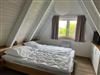 Im OG befinden sich 2 Schlafzimmer. Das Elternschlafzimmer ist mit einem Doppelbett, einem Kleiderschrank, sowie einem Flachbildfernseher ausgestattet. Hier kann zusätzlich das vorhandene Klappbett und ein Baby-Reisebett aufgestellt werden. Im zweiten Schlafzimmer sind zwei Einzelbetten. Die Fenster im OG sind mit Gardinen zum Abdunkeln und Insektenschutz versehen. An der Treppe ist ein Treppenschutzgitter angebracht.