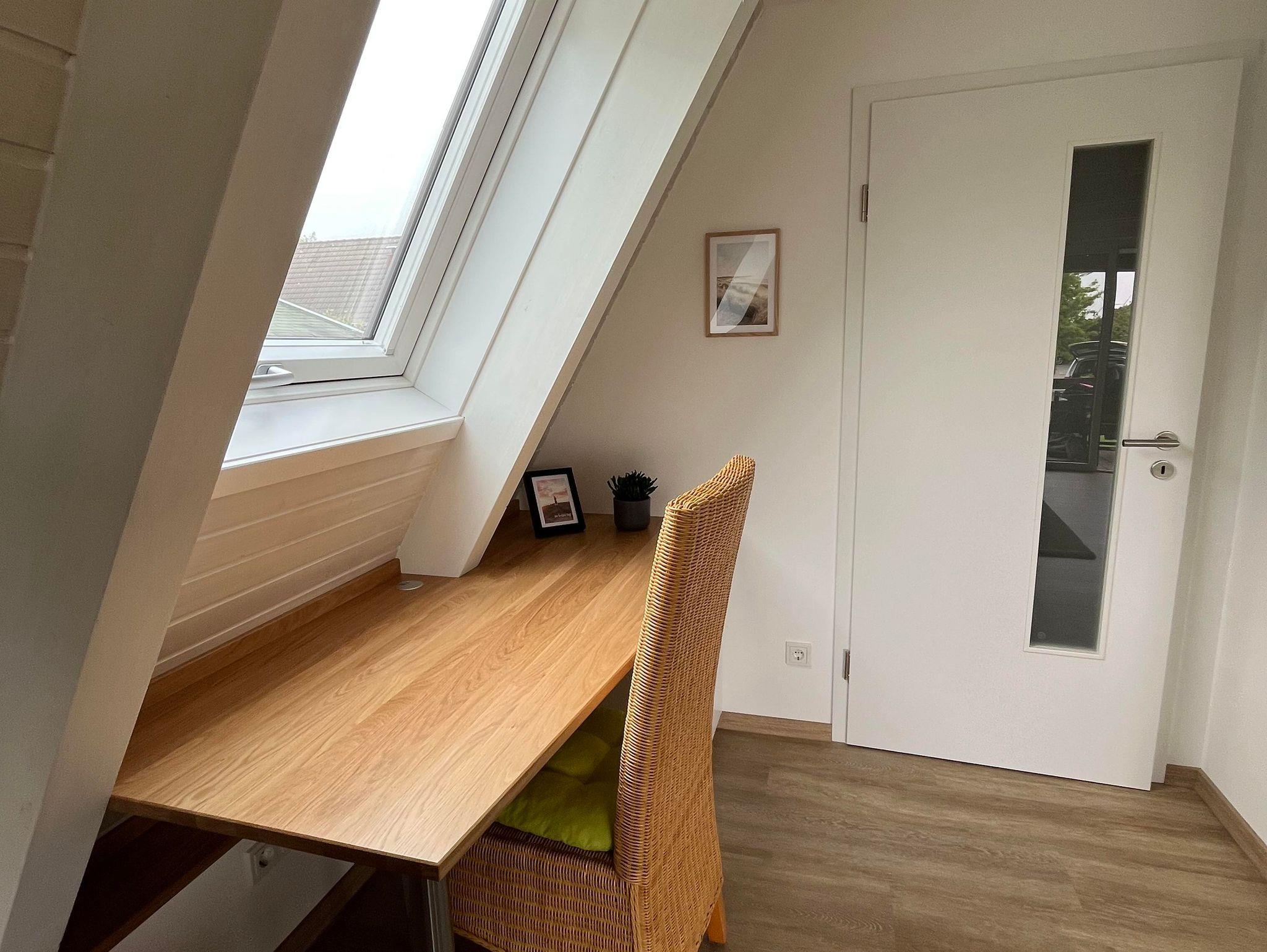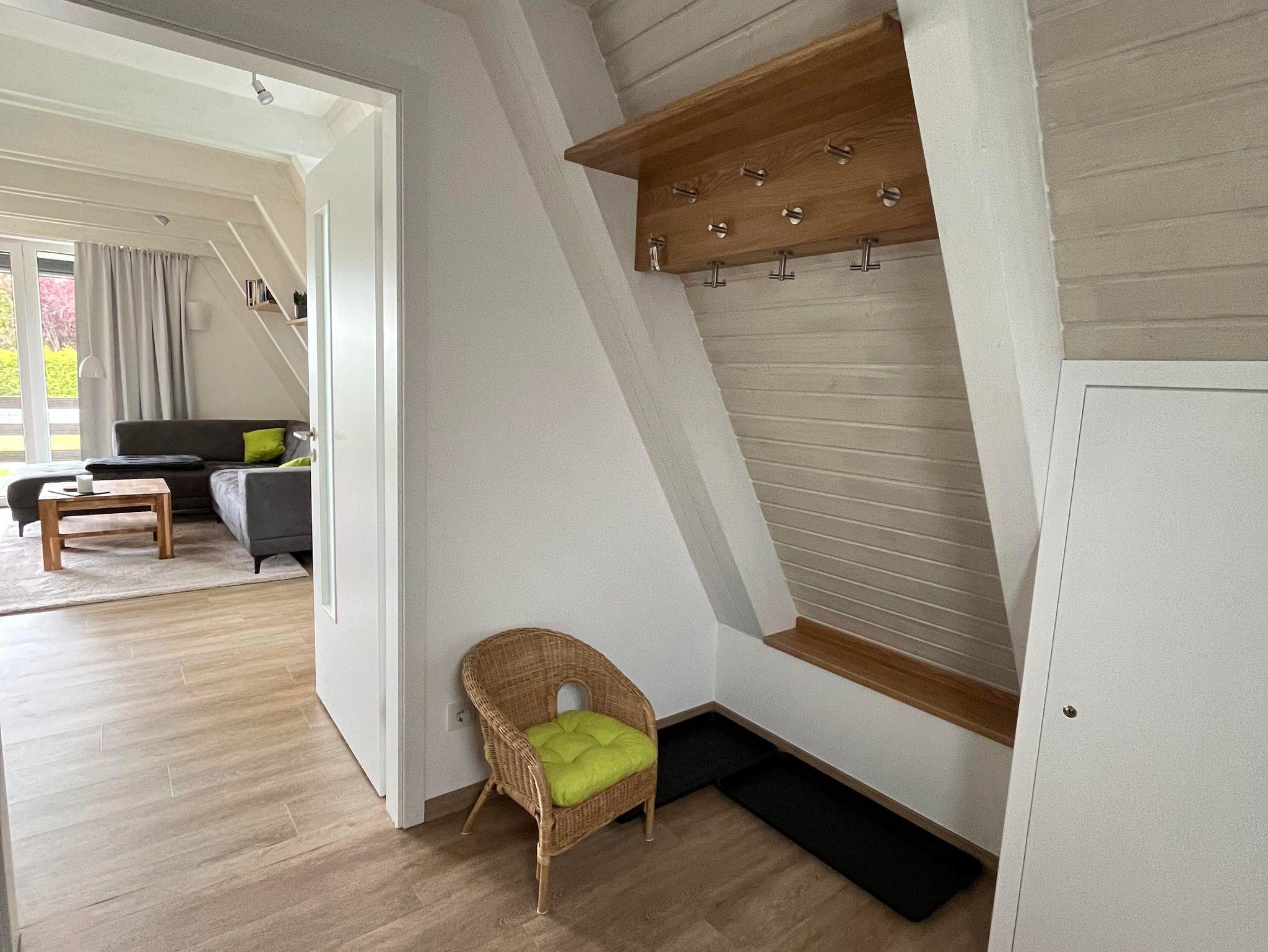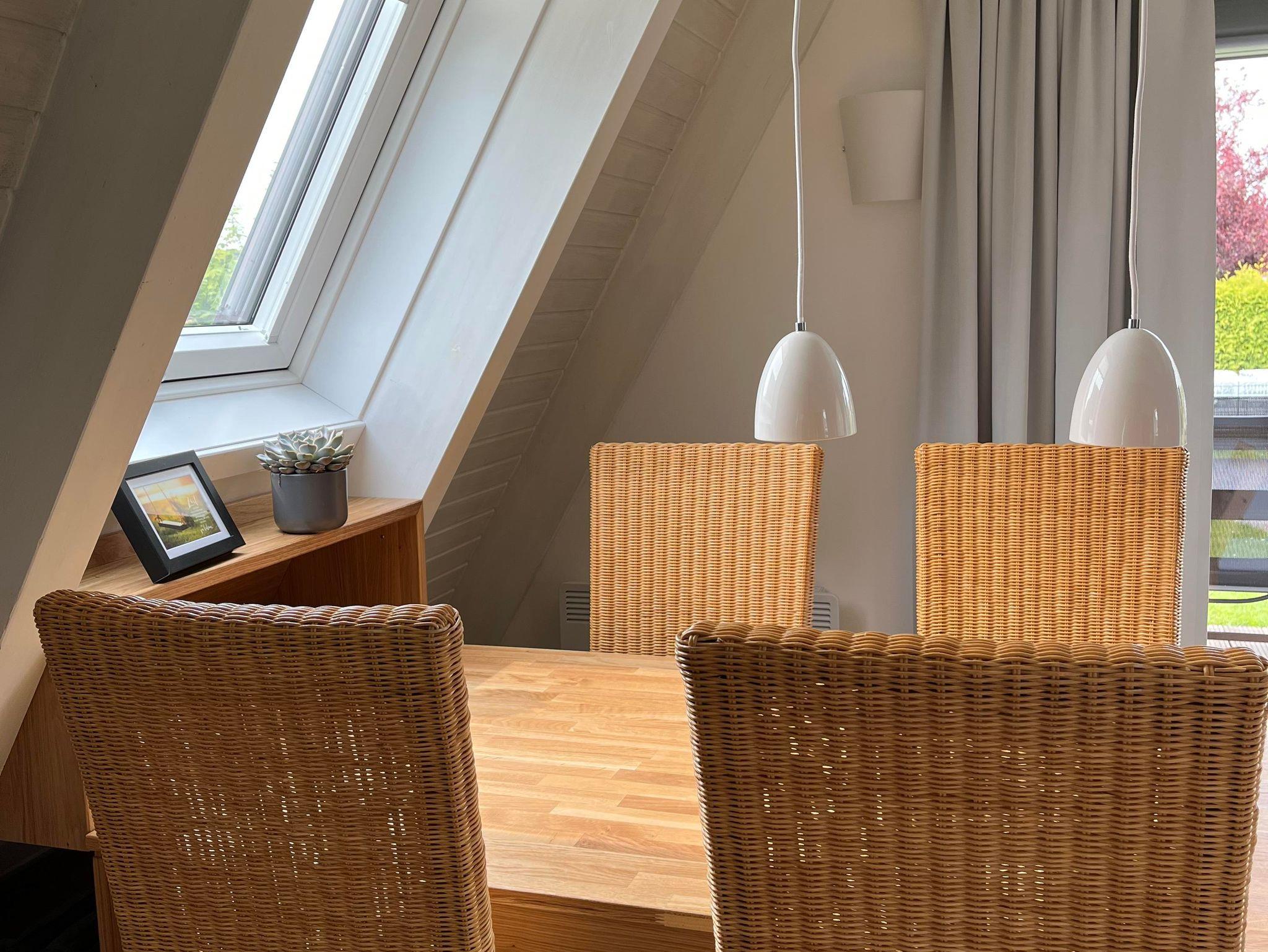 Das haustierfreie Ferienhaus verfügt im EG über ein neues Badezimmer mit großzügiger, ebenerdiger (Regen-)Dusche, WC, Insektenschutzrahmen und Fußbodenheizung. Die Küche ist mit einem Induktionskochfeld, einer Granitarbeitsplatte, einem großen Geschirrspüler und einer Waschmaschine ausgestattet. Der große Kühlschrank mit Gefrierfach bietet genügend Stauraum. Das helle Wohnzimmer mit einem Flachbildfernseher mit Smart-TV (Zugang mit eigenen Zugangsdaten), einem Ecksofa mit Couchtisch und einem Esstisch mit 5 Stühlen. Ein Hochstuhl Tripp Trapp inkl. Baby Set ist ebenfalls vorhanden. Auch ein Schreibtisch steht zur Verfügung.