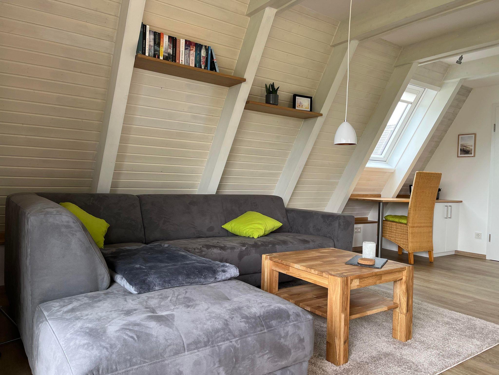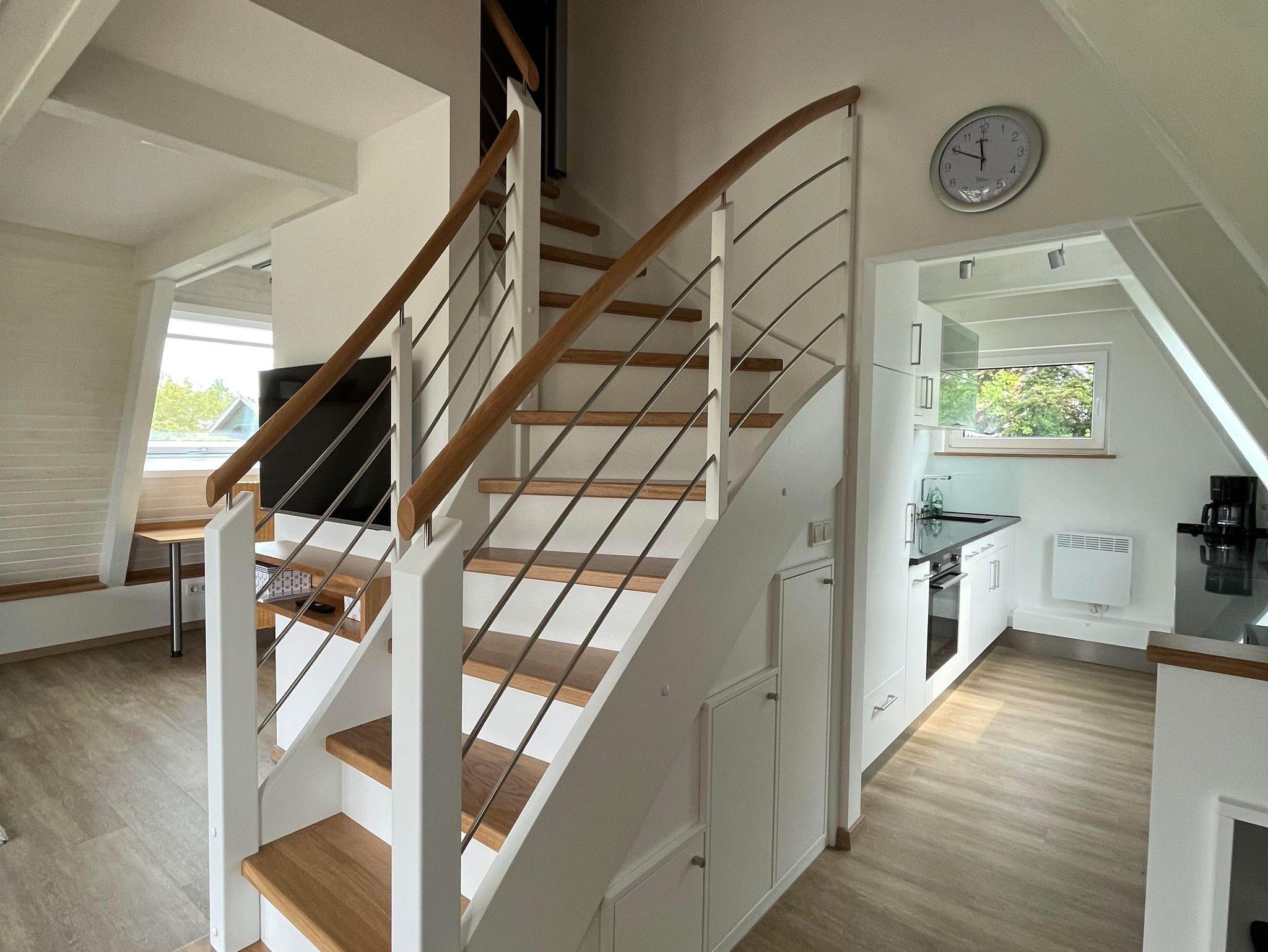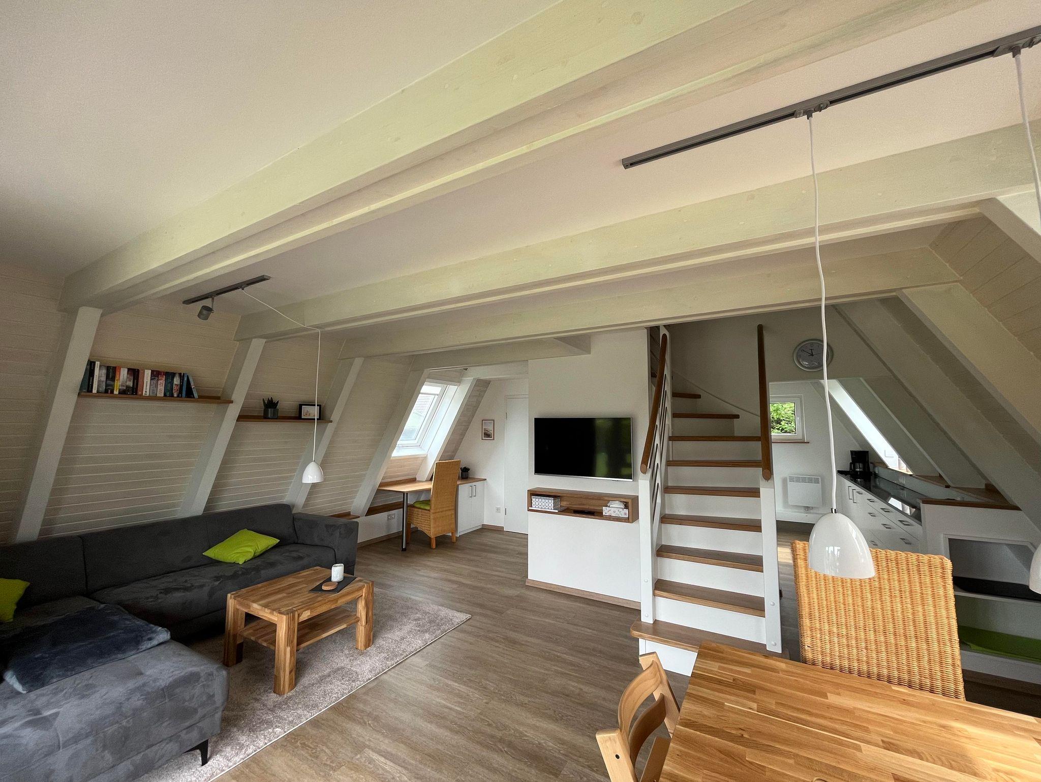Das haustierfreie Ferienhaus verfügt im EG über ein neues Badezimmer mit großzügiger, ebenerdiger (Regen-)Dusche, WC, Insektenschutzrahmen und Fußbodenheizung. Die Küche ist mit einem Induktionskochfeld, einer Granitarbeitsplatte, einem großen Geschirrspüler und einer Waschmaschine ausgestattet. Der große Kühlschrank mit Gefrierfach bietet genügend Stauraum. Das helle Wohnzimmer mit einem Flachbildfernseher mit Smart-TV (Zugang mit eigenen Zugangsdaten), einem Ecksofa mit Couchtisch und einem Esstisch mit 5 Stühlen. Ein Hochstuhl Tripp Trapp inkl. Baby Set ist ebenfalls vorhanden. Auch ein Schreibtisch steht zur Verfügung.