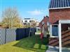 Im eigenen Garten, der komplett eingezäunt ist, finden wir dann neben einem tollen Kinderspielturm das eigentliche Highlight: Eine traumhafte Terrassenüberdachung mit Schiebetüren, Sonnenschutz und einem ausziehbaren Tisch mit 8 Stühlen.