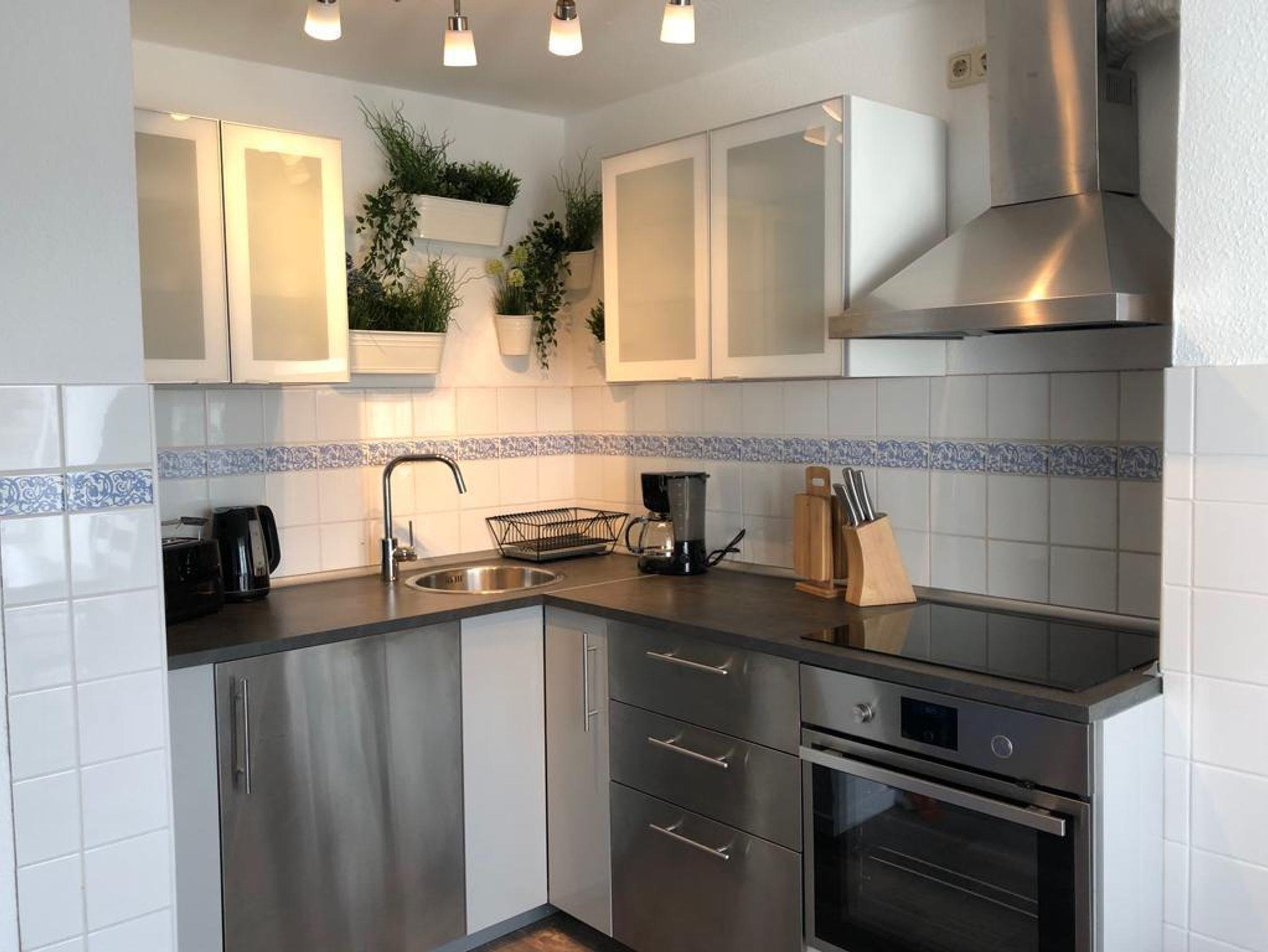 Die Ferienwohnung im Obergeschoss (ca. 68qm, 2-4 Personen) besteht aus einem Wohnzimmer mit Kochecke und zwei Schlafmöglichkeiten, Bad mit Dusche, im Dachgeschoß Doppelbett. Das Dachgeschoß hat eine Stehhöhe von 1,60m.
