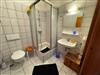 Das moderne Badezimmer verfügt über Dusche, WC, Haartrockner und Handtücher. Draußen können Sie den Garten mit Sitzmöglichkeiten und Grill nutzen, während Fahrräder sicher in der Scheune abgestellt werden können.