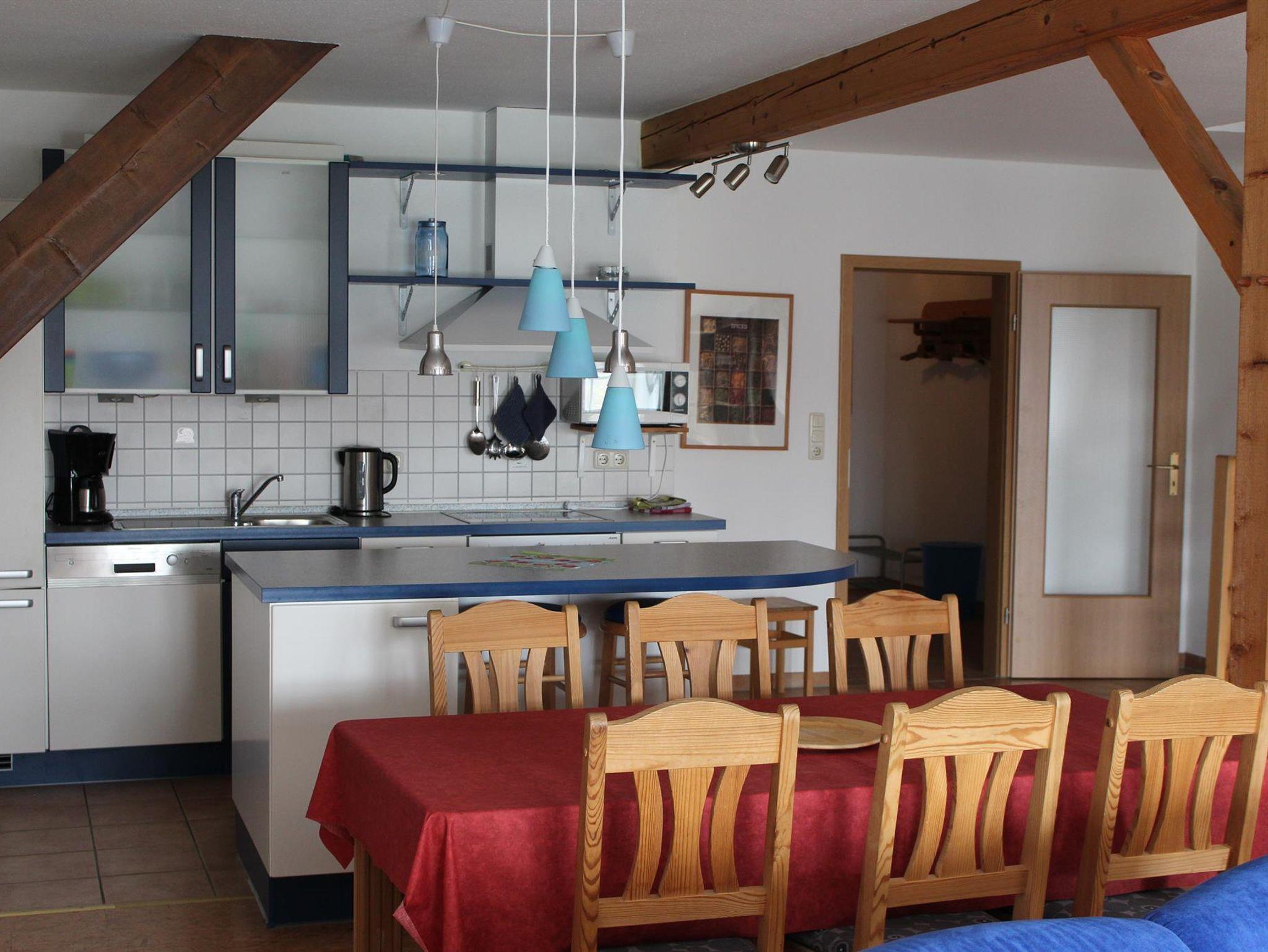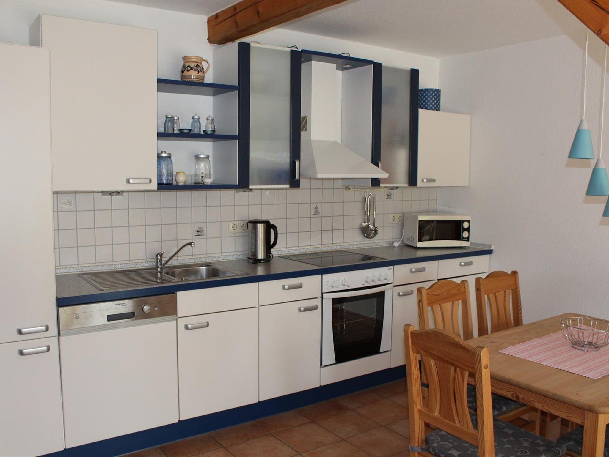 Die Ferienwohnung Sommerwind liegt im Erdgeschoß des Ferienhauses und besteht aus einem gemütlichen Wohnbereich mit Wohnecke,Radio und TV, einer Essecke, einer vollausgestatteten Küchenzeile mit Backofen, Kühlschrank, Mikrowelle, Wasserkocher, Kaffeemaschine und Toaster, ein Doppelzimmer, ein Zweibettzimmer, 2 Alkoven (Schlafnischen) und ein Bad mit Badewanne, Dusche, WC und 2 Waschtische. Die Alkoven sind nur für Kinder zum Schlafen. Vom Wohnbereich haben Sie einen direkten Zugang auf die Terrasse und den Gemeinschaftsgarten mit Spielplatz und Grill.