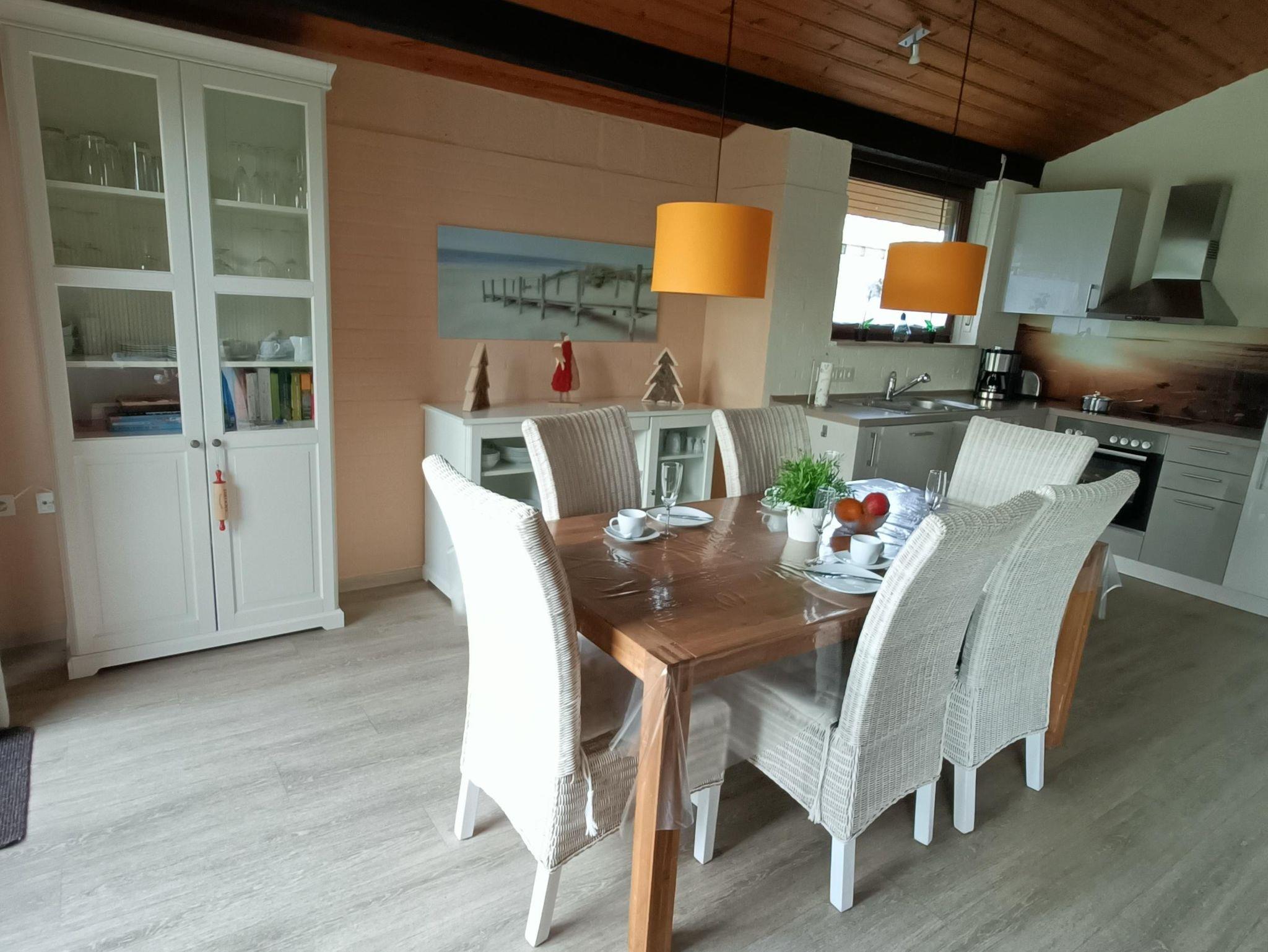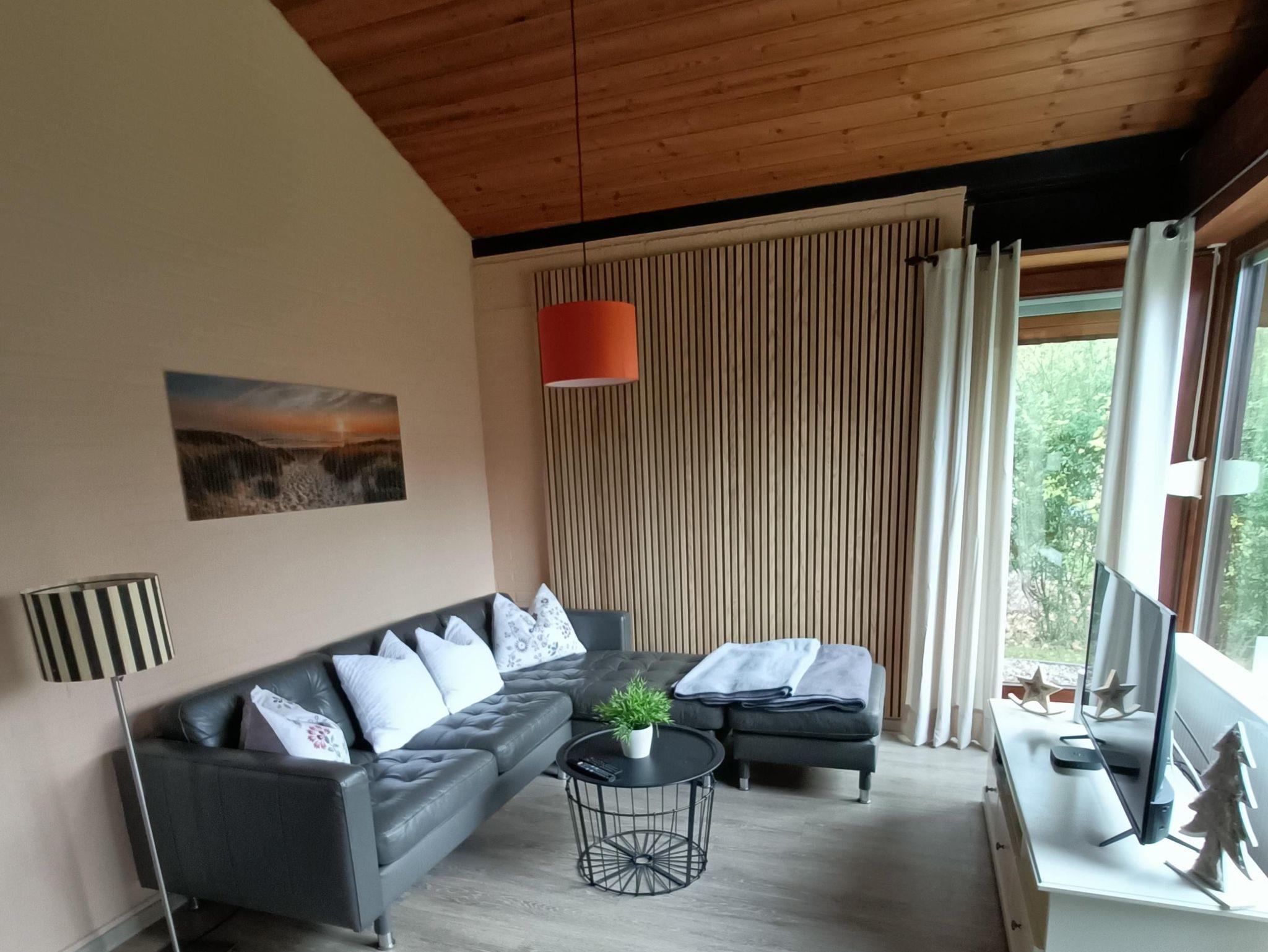 Unser liebevoll und modern eingerichtetes Ferienhaus bietet auf ca. 69 m² Platz für 4 Erwachsene und ein Kleinkind (bis 3 Jahre). Genießen Sie entspannte Tage in wohnlicher Atmosphäre mit offenem Wohn-Essbereich, voll ausgestatteter Küche und gemütlichem Ledersofa. Zwei separate Schlafzimmer sorgen für erholsame Nächte – eines mit Doppelbett, das andere mit Etagenbett. Das Bad verfügt über eine ebenerdige Dusche.
