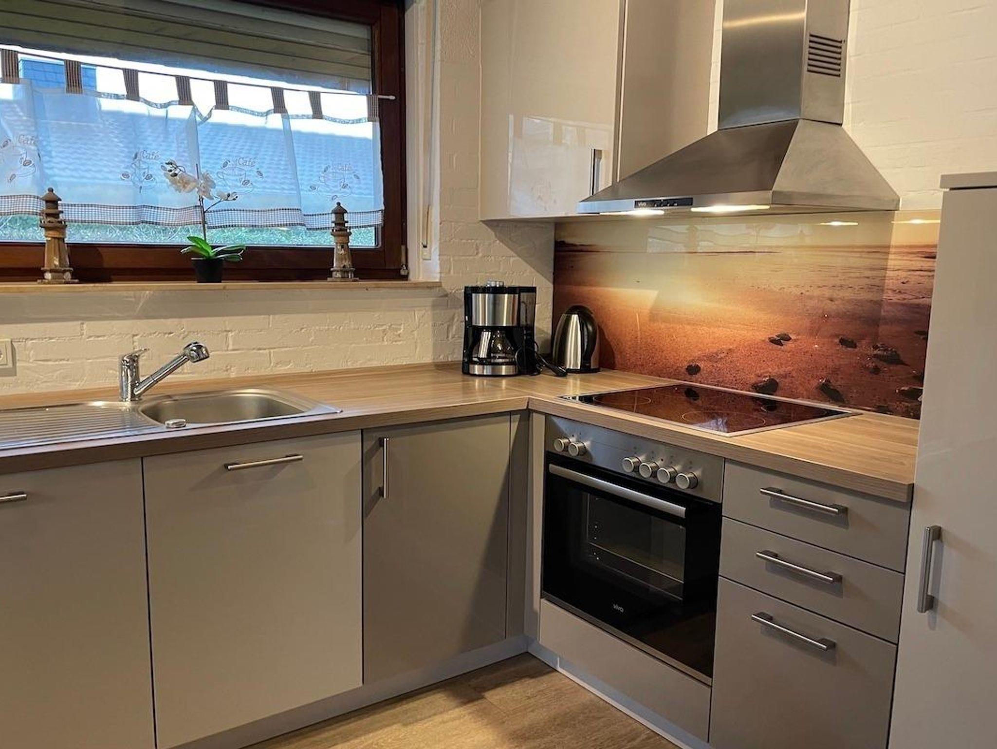 • Gemütlichem Wohn-Essbereich mit offener Küche, Theke, Cerankochfeld, Backofen, Spülmaschine sowie Senseo- und Filterkaffeemaschine. Abends einfach auf der Couch entspannen