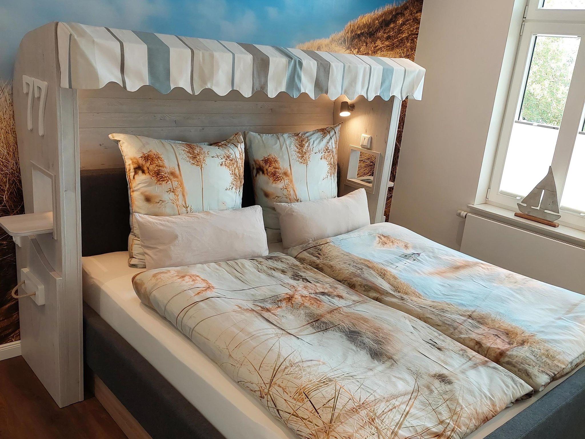 Sie wollten schon immer einmal in einem Strandkorb schlafen? Wir heißen Sie herzlich Willkommen im Strandkorb-Zimmer.